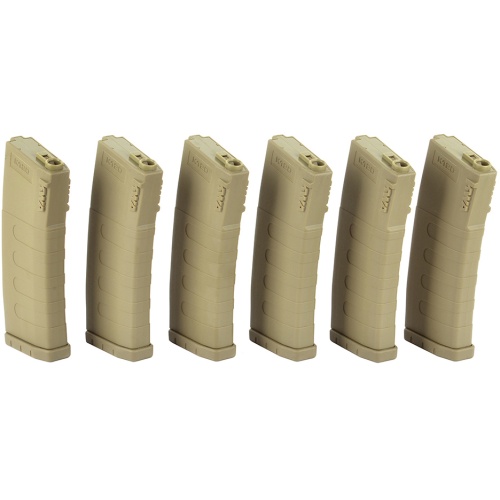 The 6X KWA K120 120RD M4 / M16 Mid-Cap AEG Rifle Magazines bundle in Dark Earth is built for airsoft players who want dependable feeding, durable construction, and enough magazines to stay competitive throughout long game days. Each magazine is constructed from high density impact resistant polymer, providing a lightweight yet rugged design that holds up to repeated reloads, drops, and field use. With a 120 round mid-capacity format, these magazines deliver a realistic ammunition count without the rattling noise or winding mechanisms associated with high-cap magazines. The spring guided internal system ensures consistent BB feeding when loaded with a speedloader, helping maintain smooth cycling and reliable performance during semi-auto and full-auto fire. Designed for broad compatibility, these magazines work with KWA, Echo 1, Tokyo Marui, G&G, VFC, JG, and other M4 or M16 style airsoft AEG platforms, making them a versatile choice for most airsoft rifles. This six-pack configuration is ideal for players who want to minimize downtime and maximize time on the field. Carrying multiple loaded magazines allows for faster reloads during skirmishes, milsim events, and training sessions, while the mid-cap design supports stealth-focused play by eliminating unnecessary noise. The dark earth finish pairs well with modern tactical rifle builds and outdoor environments, offering both functional and visual consistency. The polymer housing resists cracking and wear while maintaining a secure fit in compatible magwells, promoting reliable seating and feeding under stress. Airsoft players searching for M4 mid-cap magazines, M16 AEG magazines, KWA airsoft mags, or bulk magazine upgrades will appreciate the balance of realism, durability, and performance this set provides. Whether you are building a dedicated milsim loadout, preparing for extended events, or simply upgrading your existing magazine setup, the KWA K120 120RD mid-cap magazine bundle delivers consistent performance and practical value for serious airsoft use.