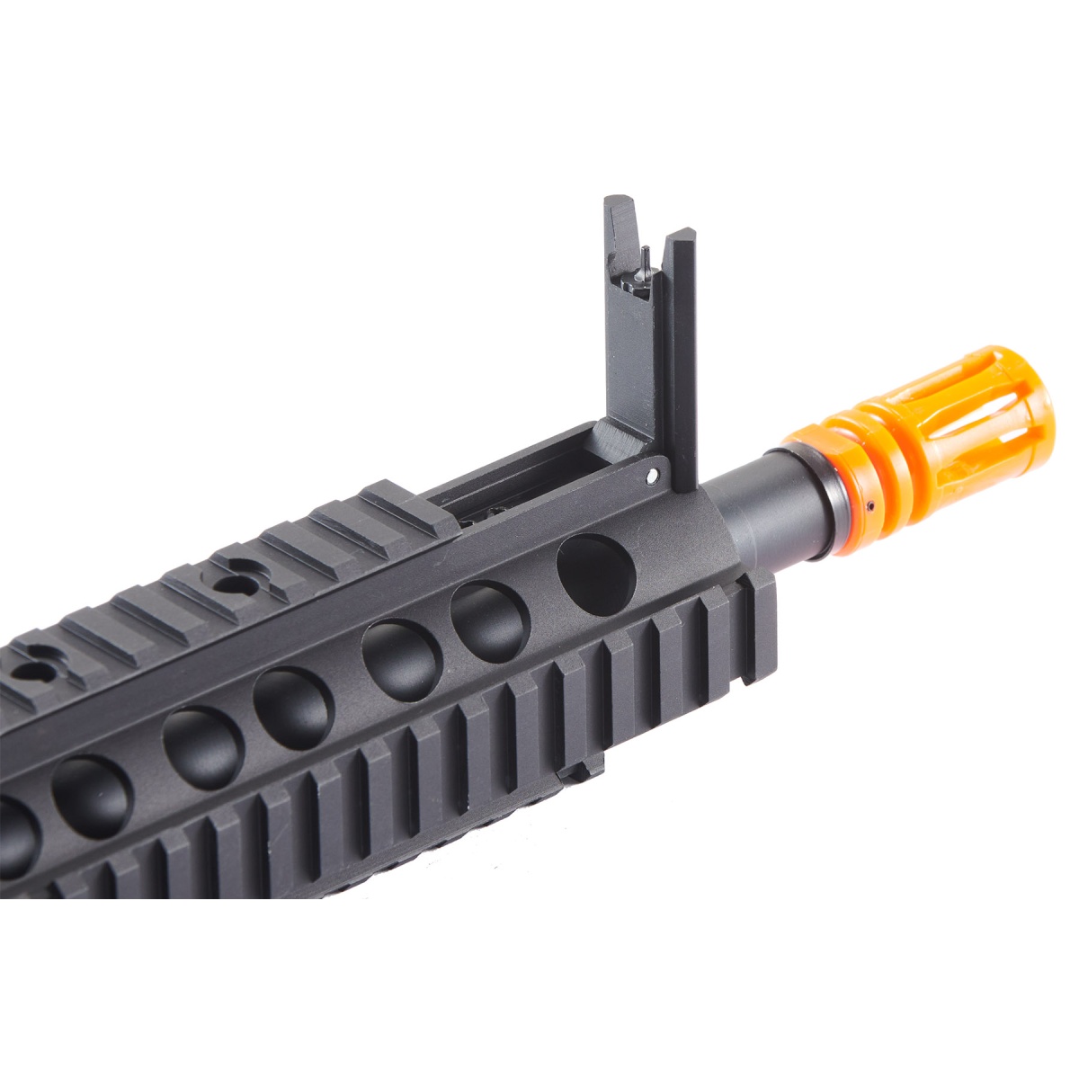 This Golden Eagle Carbine Length Complete Polymer Upper Receiver features a full metal 13 free float rail system, as well as a 14 full metal free float barrel. This combination provides improved accuracy, and reduces strain on the barrel and upper receiver. The mid length design of this polymer complete upper receiver make it ideal for all types of airsoft field environments. Each Golden Eagle complete polymer upper receiver features an included 6.05mm diameter inner barrel and a two-piece polymer hop-up chamber, making it ready to go right out-of-the-box without additional assembly. The upper receiver features an integrated top optics rail, which provides ample space for attaching aftermarket optics. The installed full metal rail system provides 52 inches of combined rail space for attaching a wide variety of aftermarket rail mounted accessories, such as foregrips, lights, lasers, and rail covers.
