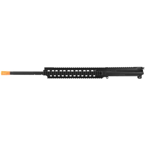 This Golden Eagle Rifle Length Complete Polymer Upper Receiver features a full metal 13†free float rail system, as well as a 19.5†full metal free float barrel. This combination provides improved accuracy, and reduces strain on the barrel and upper receiver. The rifle length design of this polymer complete upper receiver make it ideal for longer range airsoft fields. Each Golden Eagle complete polymer upper receiver features an included 6.05mm diameter inner barrel and a two-piece polymer hop-up chamber, making it ready to go right out-of-the-box without additional assembly. The upper receiver features an integrated top optics rail, which provides ample space for attaching aftermarket optics. The installed full metal rail system provides 52 inches of combined rail space for attaching a wide variety of aftermarket rail mounted accessories, such as foregrips, lights, lasers, and rail covers.