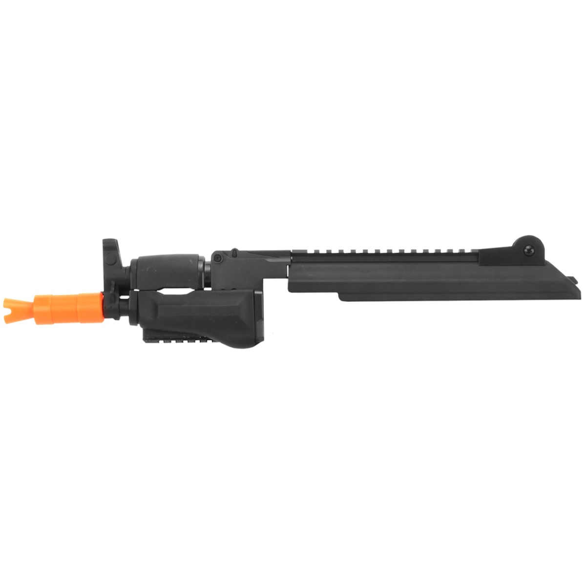 The Golden Eagle AK47 Spetsnaz Front Barrel Assembly, built for close quarters combat, has a shortened handguard and compact outer barrel. This makes it perfect for room clearing scenarios and rushing toward your targets. The four-inch outer barrel is also made of full metal to ruggedize the airsoft rifle’s build. The shorted handguard sports plenty of rail space for your preference of LED flashlights, laser illuminators and vertical grips. An adjustable hop-up also ensures that your targets hit your targets. Additionally, this AK47 barrel assembly comes with a top optics rail for mounting scopes and dot sights without having to install aftermarket scope mounts.