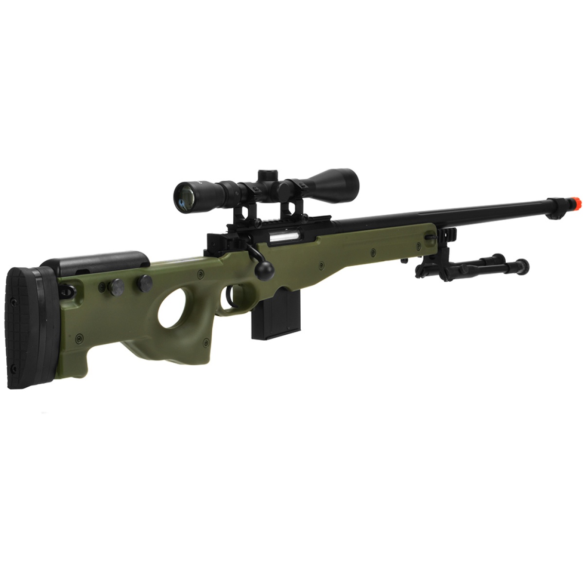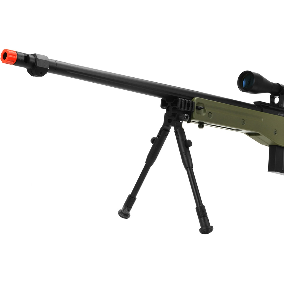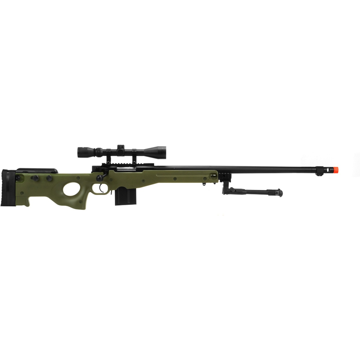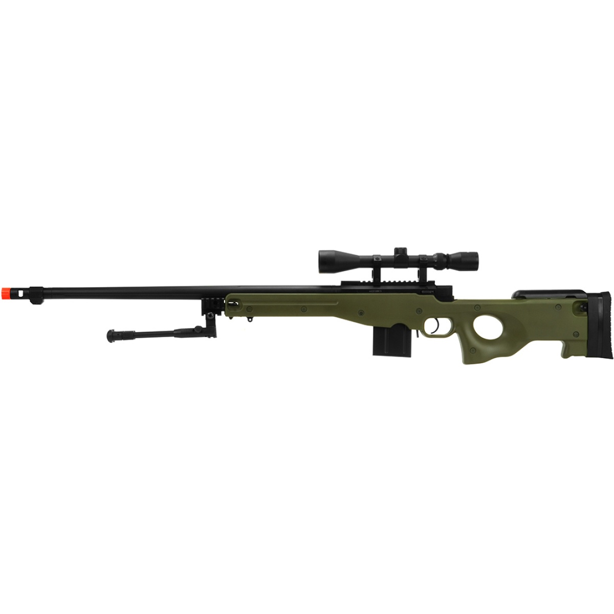 One of the best features of this WellFire sniper rifle is the price, which is far below what you will pay for most other airsoft guns in its class. But the low out of pocket cost is by no means indicative of low performance. The polymer thumbhole stock is ergonomically designed for shooter comfort and is lightweight as well, making this gun highly maneuverable when/if you need to scramble from your sniper hide. To further improve comfort and functionality, an adjustable cheek rest sits atop the stock and lets you sink in a firm cheek weld, which in turn helps to improve accuracy. An adjustable hop-up provides fine control over BB trajectory and is easily accessed via a large adjustment wheel on the bottom of the forestock right in front of the magazine well. The included bipod, which is constructed entirely from metal, offers adjustable legs so you can post up nearly anywhere and still acquire an accurate and stable sight picture. A 3-9x40 high powered rifle scope comes standard, and is fully adjustable so you can maximize the effective range, reaching out and touch targets at distances well beyond what most other rifles are capable of. By merging realism, power, accuracy, and mobility, WellFire has once again provided a top performing and cost effective long gun in the MK96 AWP Bolt Action Airsoft Sniper Rifle.