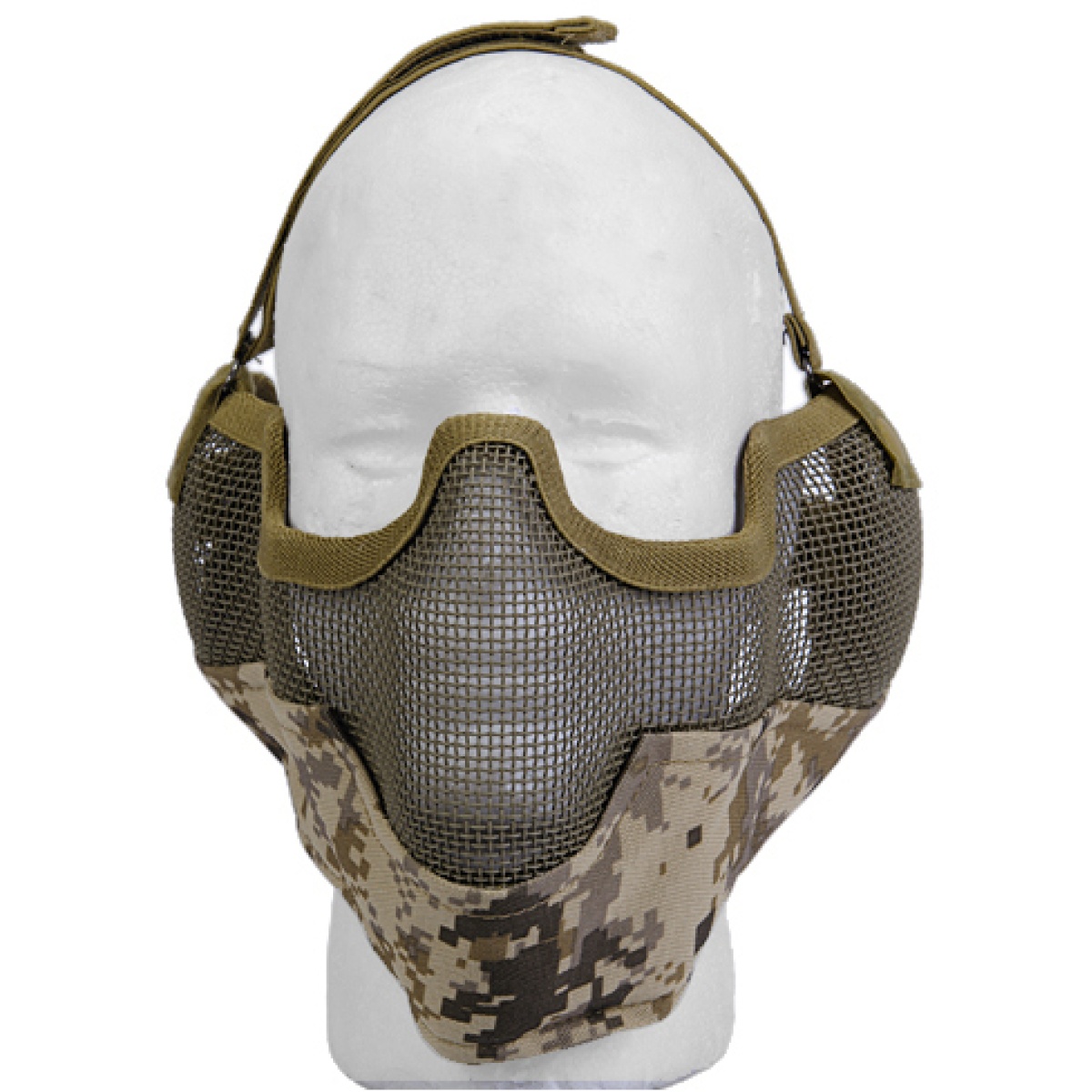 UK Arms Airsoft Metal Mesh Half Face Mask w/ Ear Pro - DESERT DIGI