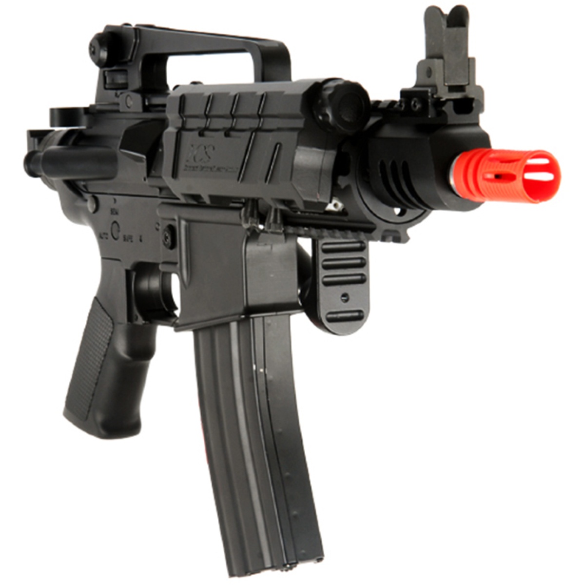 Compact, lightweight, and a tough full metal construction: the capabilities of the ICS Airsoft CQB M4 Full Metal AEG can be summed up in one word: versatile. This full metal M4 is backed with a tactical folding skeleton stock to instantly switch into close quarters battle. The FIRSCH designed RIS can be used to equip a number of accessories that further enhance the tactical capabilities of this already capable M4. The included high capacity wind up mag carries 400 rounds. A carry handle allows you to transport your M4 like a suitcase, and can be removed when you're ready for a business meeting. Included rail mounted swivels enable you to attach a sling to conveniently carry your rifle. With an ergonomic grip, 3 modes of firing, and a front wired attached PEQ box battery holder, this versatile M4 will make you a powerful ally, and a dangerous foe.