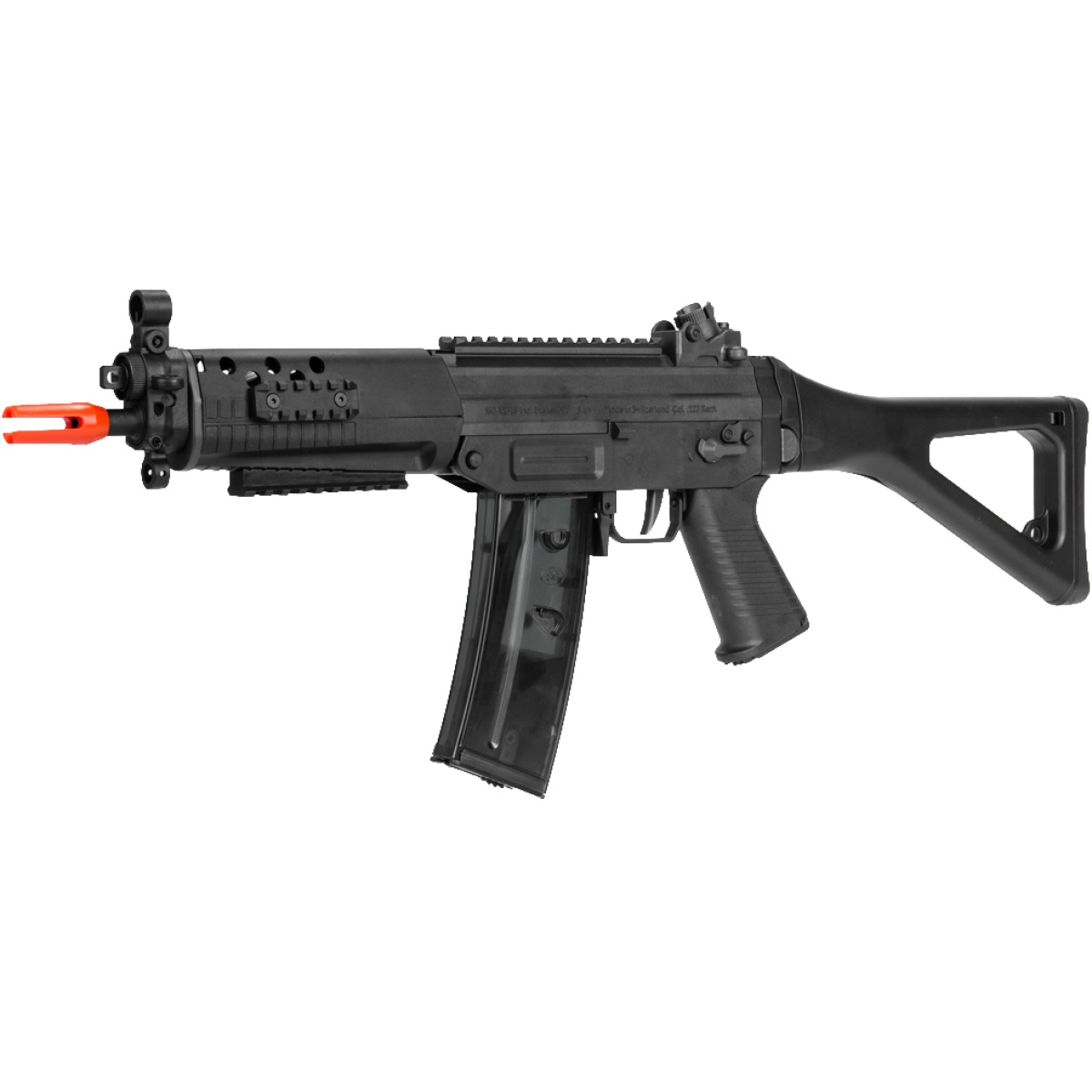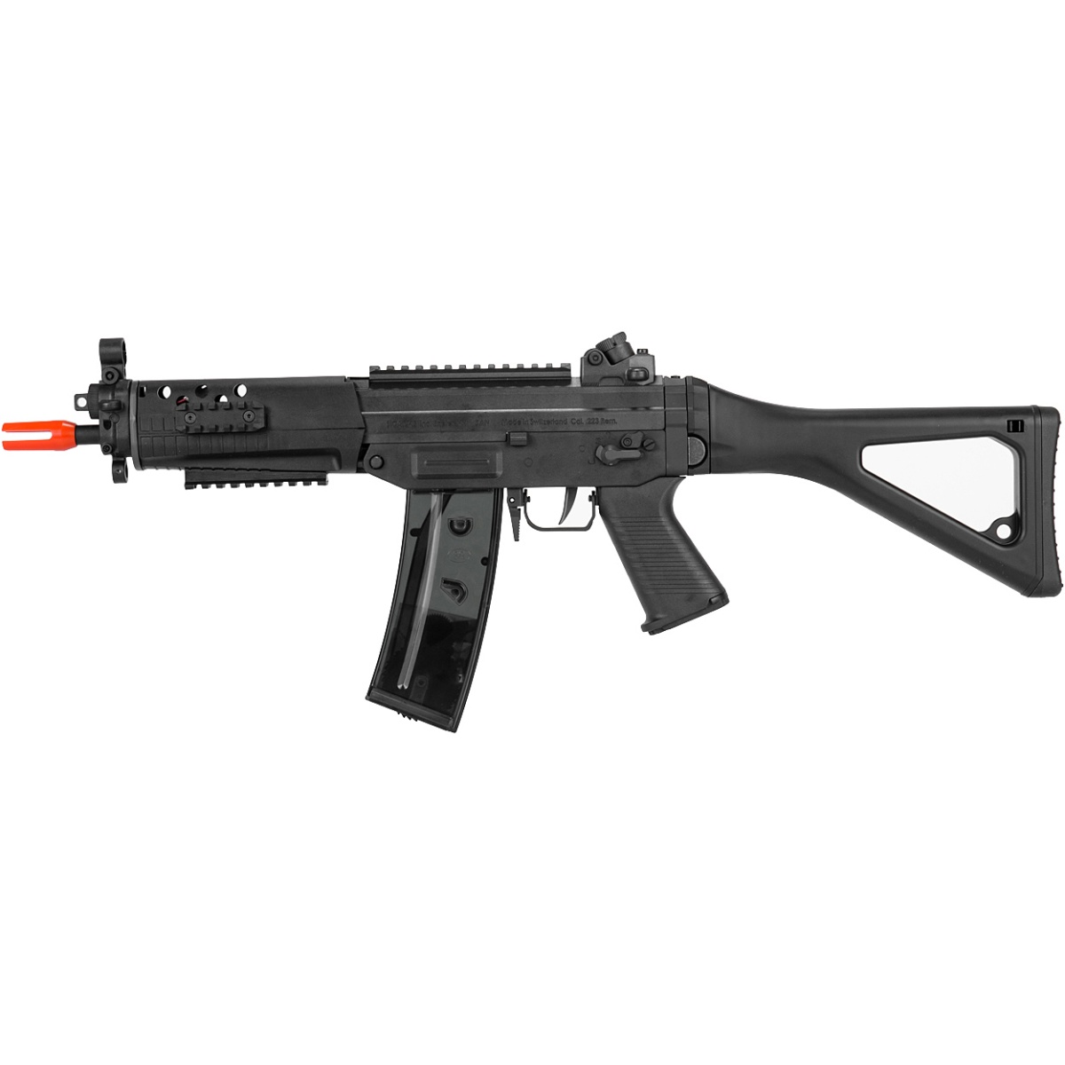 Looking to run a lightweight platform that delivers peak performance? The ICS SG 552 Commando is the perfect compact airsoft gun for close quarters combat. This SG 552 Airsoft AEG Rifle, which is a replica of the shortened version of the SG 551, falls into ICS’ sportline series of AEGs. This makes it one of the most high performing airsoft guns on the market with lightweight furniture tailored for high-speed players. The rotating diopter rear sight, similar in design to MP5-style AEGs, adjusts into four different apertures for improved target acquisition. Though this rifle features a lightweight polymer build (receiver, stock, handguard, motor grip), the internals are completely metal. A reinforced Version 3 gearbox and M100 spring combined ensures that rounds tag targets at up to 350 FPS (w/ 0.20g BBs), making it legal in most indoor fields. Additionally, this airsoft SG 552 AEG also comes with stainless steel bushings and a precision 6.04mm inner barrel. This SG 552 Commando AEG, equipped with a foldable rear skeleton stock, comes with two 470-round magazines to give you ample ammo capacity for any situation.