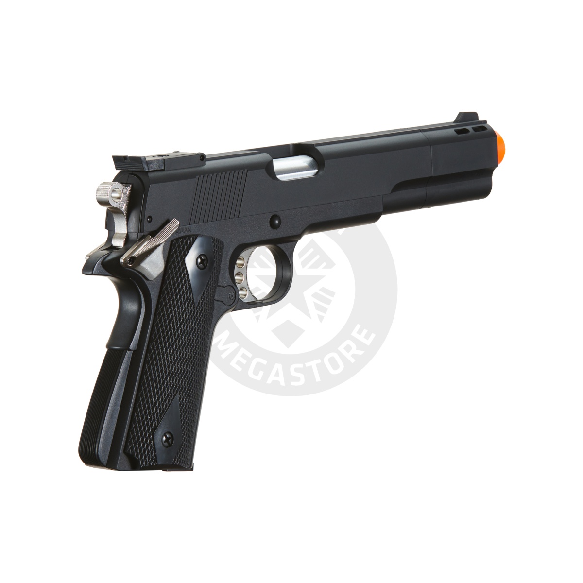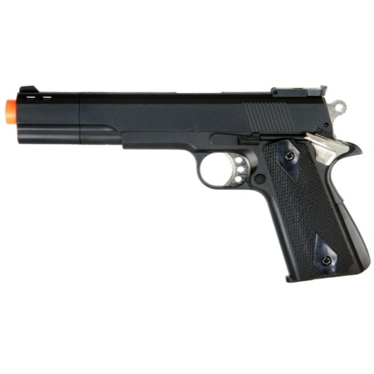 The HFC Airsoft Gas M1911 Pistol Tactical Sidearm is the go to for an affordable gas powered pistol that doesn't break the bank. This pistol is a replica of the classic M1911 design, with a full metal alloy trigger, hammer, and inner barrel. Front and rear sights assist on honing in on your enemies or other targets from close range and the pistol grip gives delivers a firm hold on your M1911 while being drawn from a holster or fired. When you want to try a gas pistol without having to spend too much the HFC Airsoft Gas M1911 Pistol Tactical Sidearm awaits.