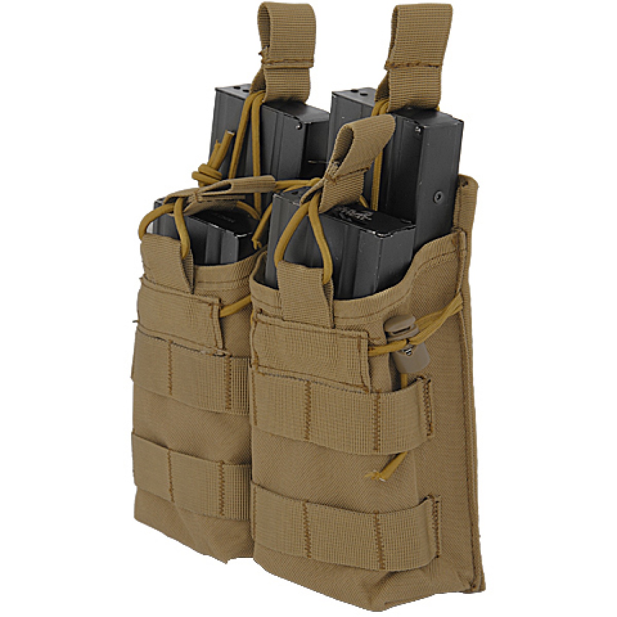 Lancer Tactical Airsoft Bungee Open Top Quad M4 Mag Pouch - TAN