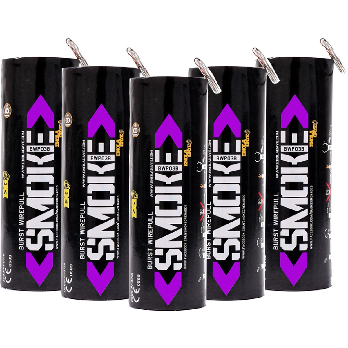 Enola Gaye Pack of 5 Twin Vent Burst High Output Airsoft Wire Pull Smoke Grenade (Color: Purple)