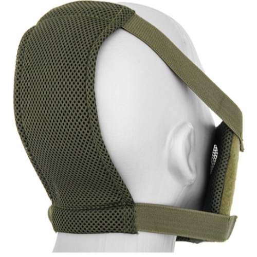 This full protection lower face mask features plush foam lining around the edges of the mask, which ensures a secure and comfortable fit. The surface of the padding is a nylon weave, supplying even greater breath-ability. The stitching is very durable and snug fitting, granting you excellent maneuverability. The mesh wiring does not restrict air flow and prevents you from overheating. The contours of the mesh are pre-fitted to fit most airsoft players' facial structures, and they can be adjusted by hand to fit the unique features of your face.