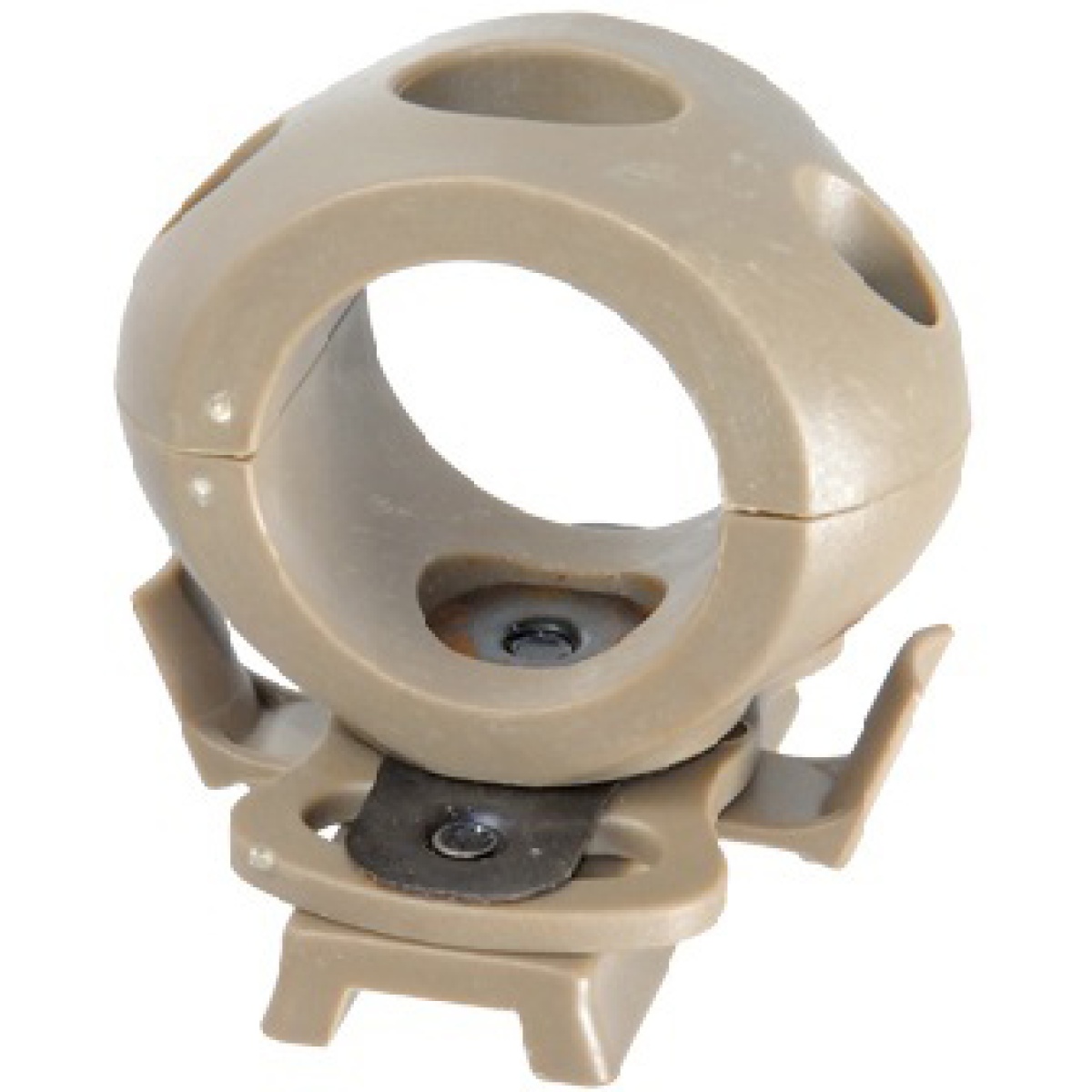 Mounts onto helmets for standard helmet accessories such as flashlights, lasers, and other 1.2 diameter accessories