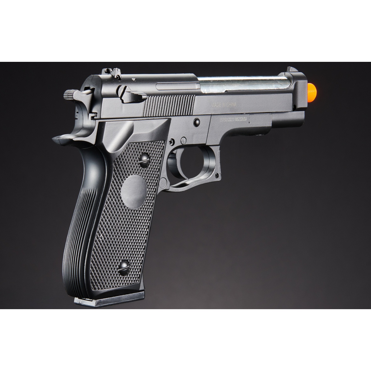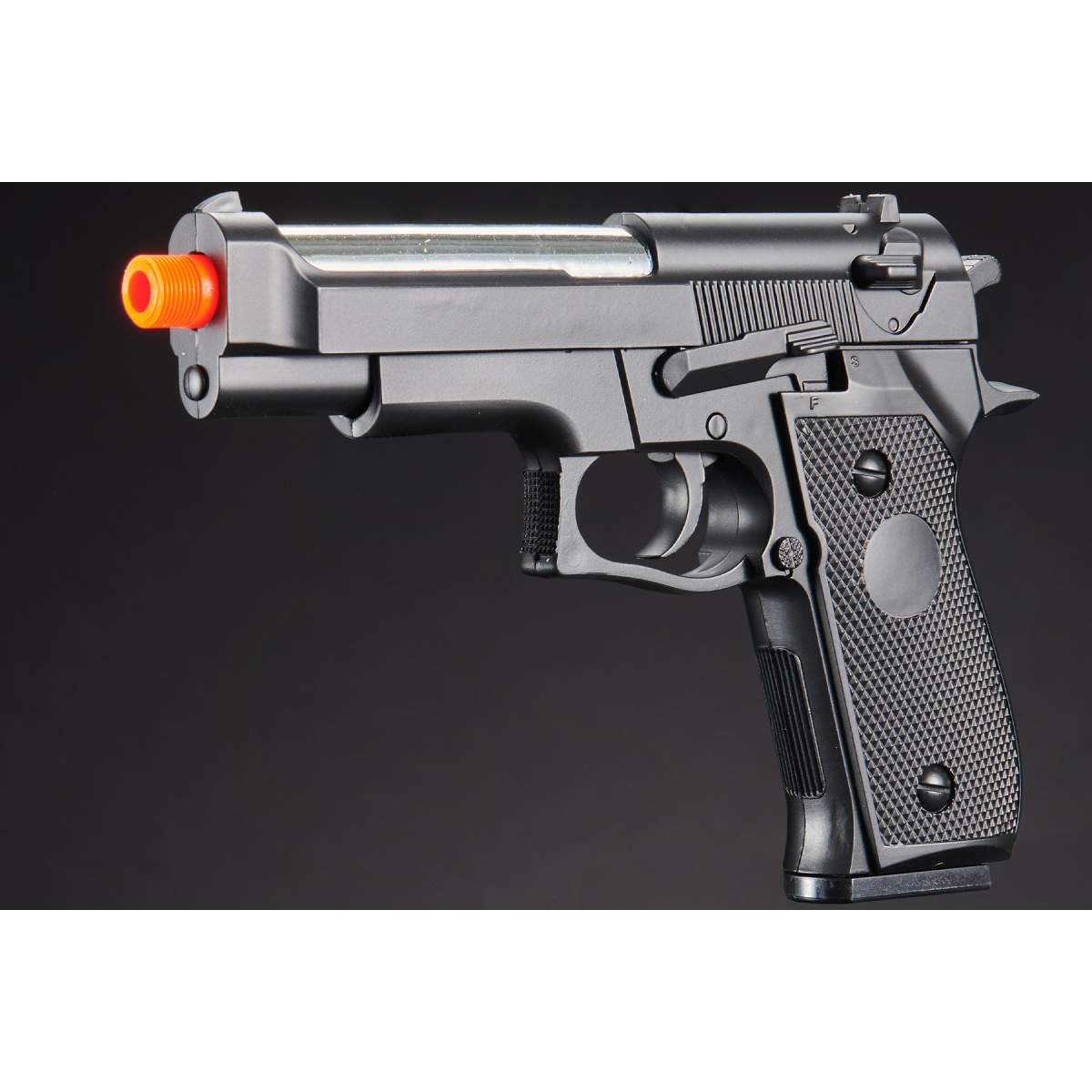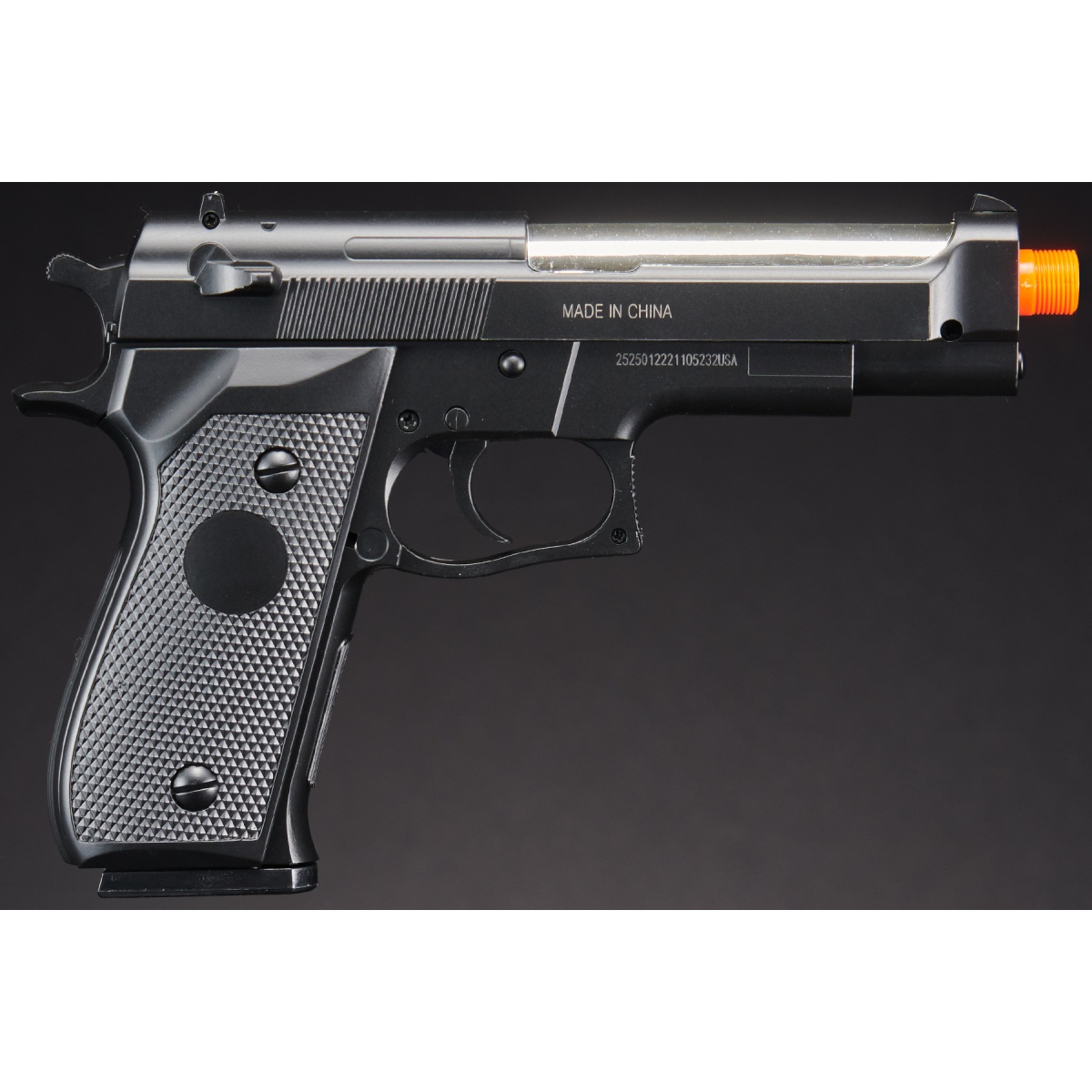 Double Eagle M22 Two Tone Spring Powered Airsoft Pistol w/ Mock Suppressor - (Black)