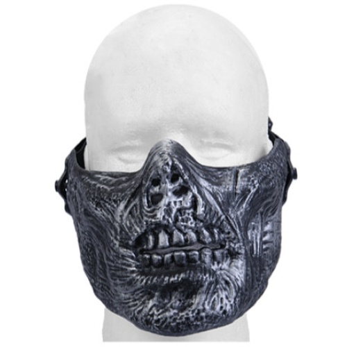 UK Arms Airsoft Tactical Zombie Skull Half Face Mask - SILVER/BLACK