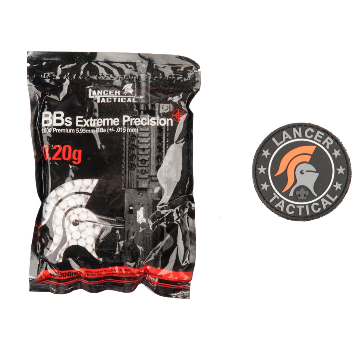 Included with the AEG rifle is a bag of 0.20g 1000rd BBs and a Lancer Tactical Patch for a complete airsoft package.