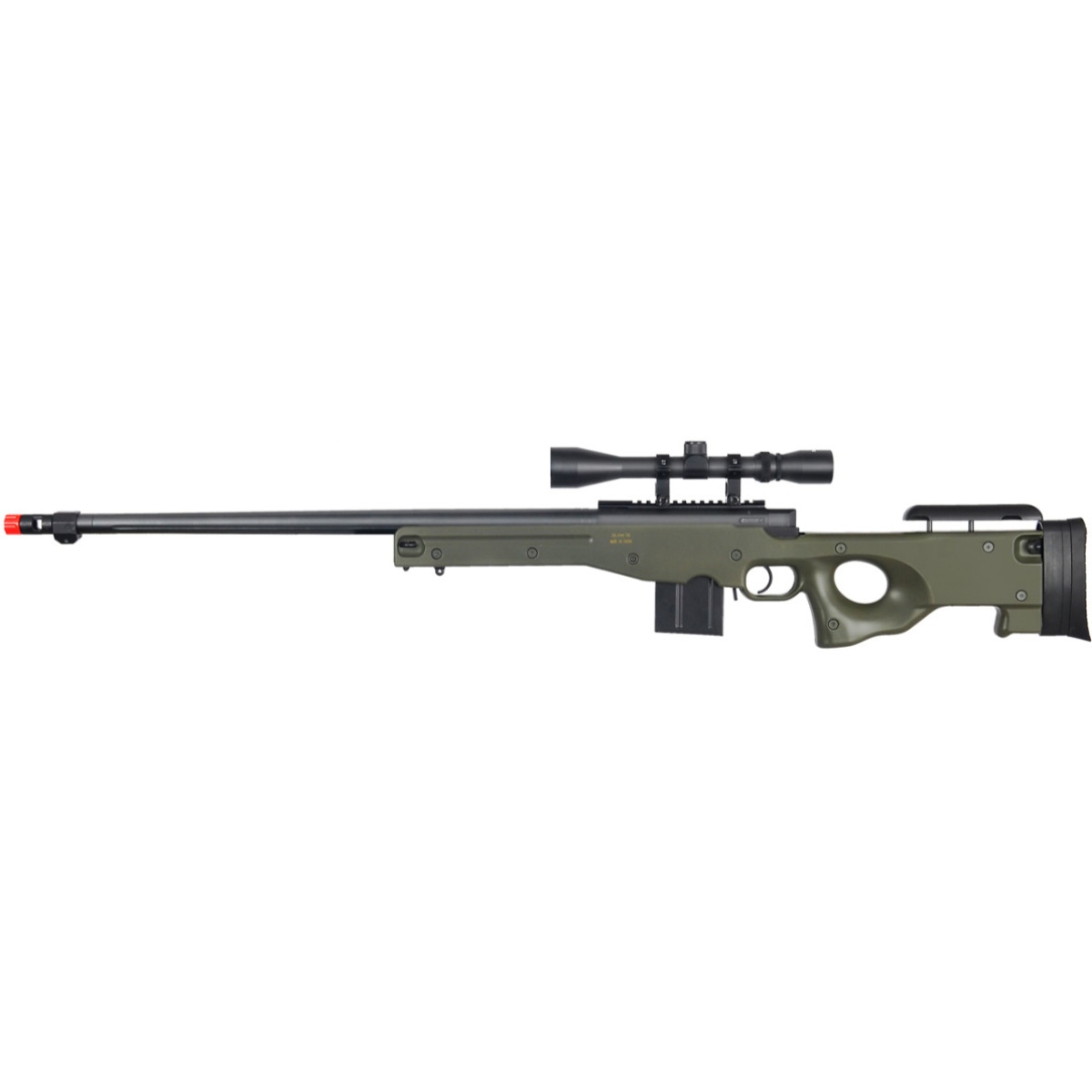 | Build | Metal/ Inner/Outer Barrel, Bolt ABS Plastic Stock |