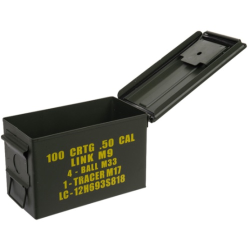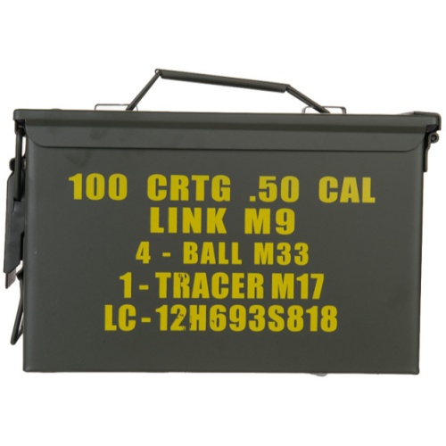 Add some war-fighting personality to your personal storage with an incredibly solid metal military style M2A1 .50 Cal Ammunition Can by Lancer Tactical. This Medium sized Ammo can bears a striking resemblance to the Genuine U.S. Military Issue variety made popular by members of the U.S. Armed Forces in support of Freedom. By design, this ammo can has a sturdy construction that is surely built to last.