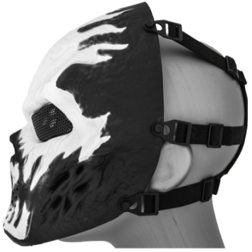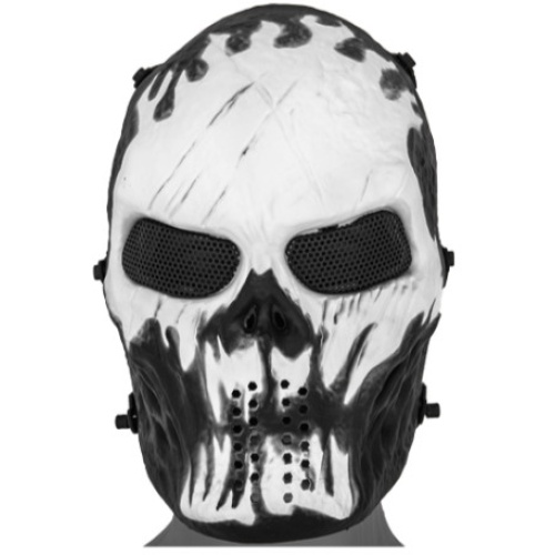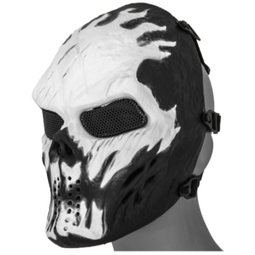 UK Arms Airsoft Full Face Metal Mesh Villain Mask - WHITE FLAMES