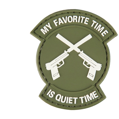 UK Arms Airsoft Tactical "Fav Time is Quiet Time" PVC Patch - OD GREEN