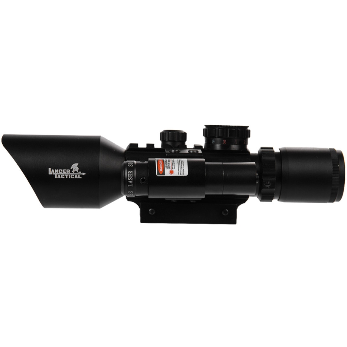 • - Integrated tactical red laser sight.