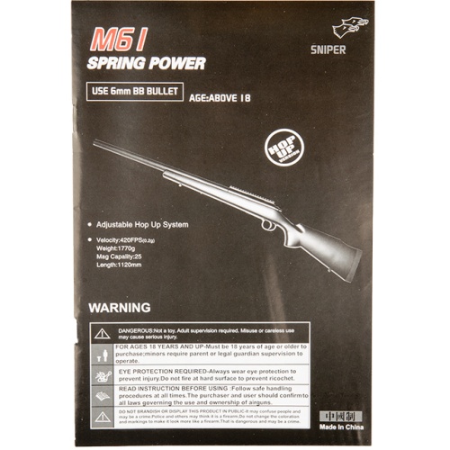 | Muzzle Velocity | 380 - 400 FPS with 0.20g BBs |