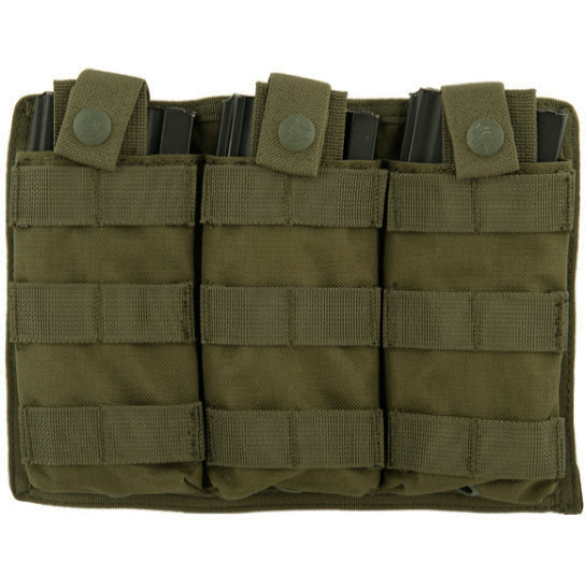 • Three MOLLE straps with brass snap buttons that keeps your magazines secure and safe.