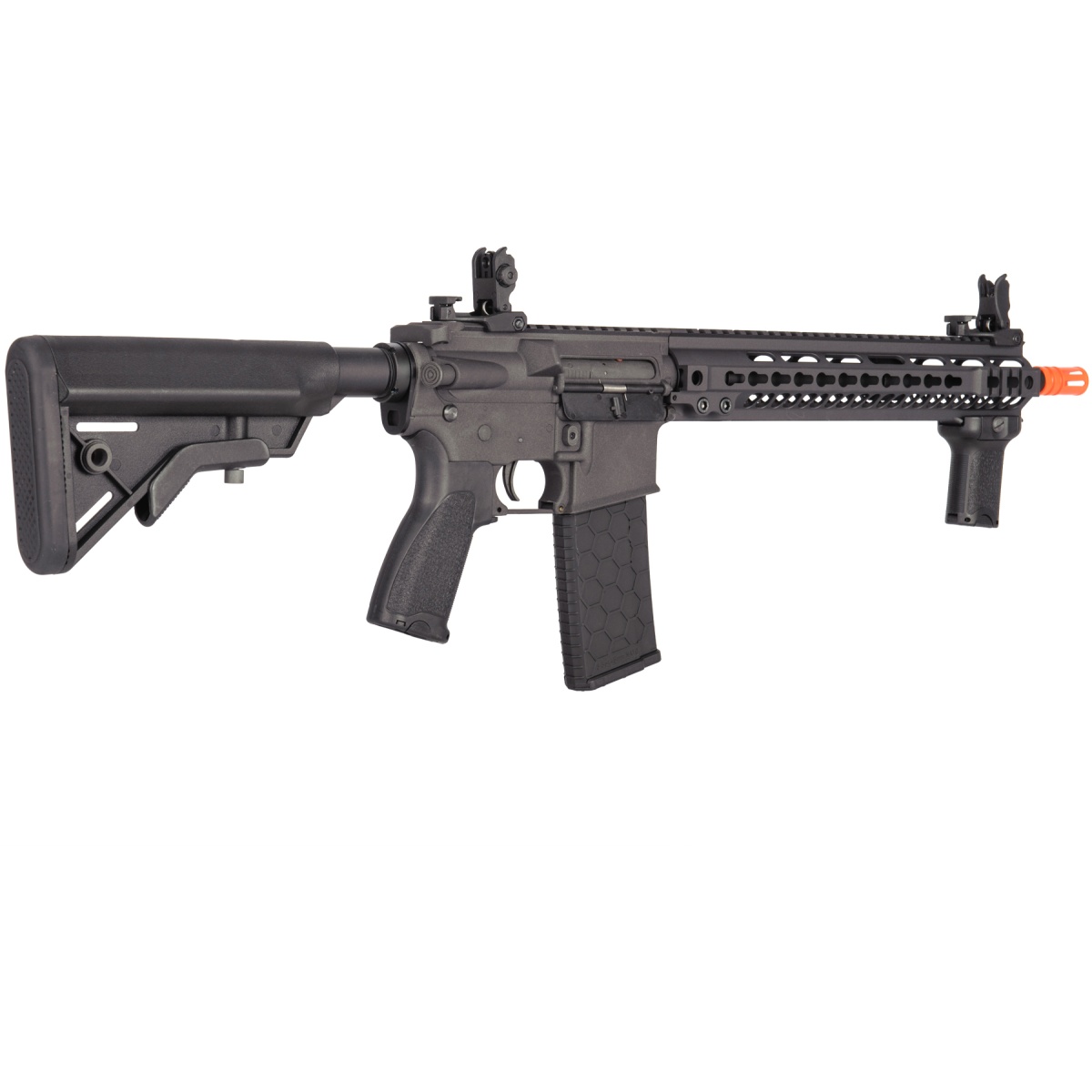 | Build | Full Metal Rail System, Receivers, Outer Barrel, Hop-Up, Gearbox / Polymer Motor Grip, Muzzle, Stock, Magazine |