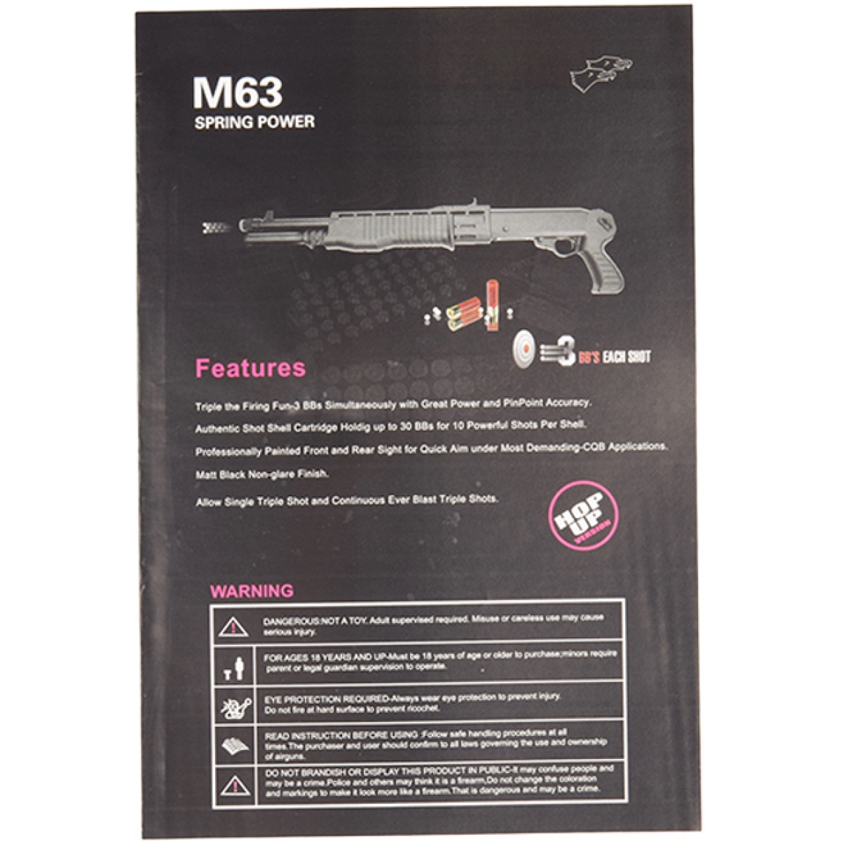 Double Eagle M63 Pump Action 3x10 Shell Tri-Shot Airsoft Shotgun