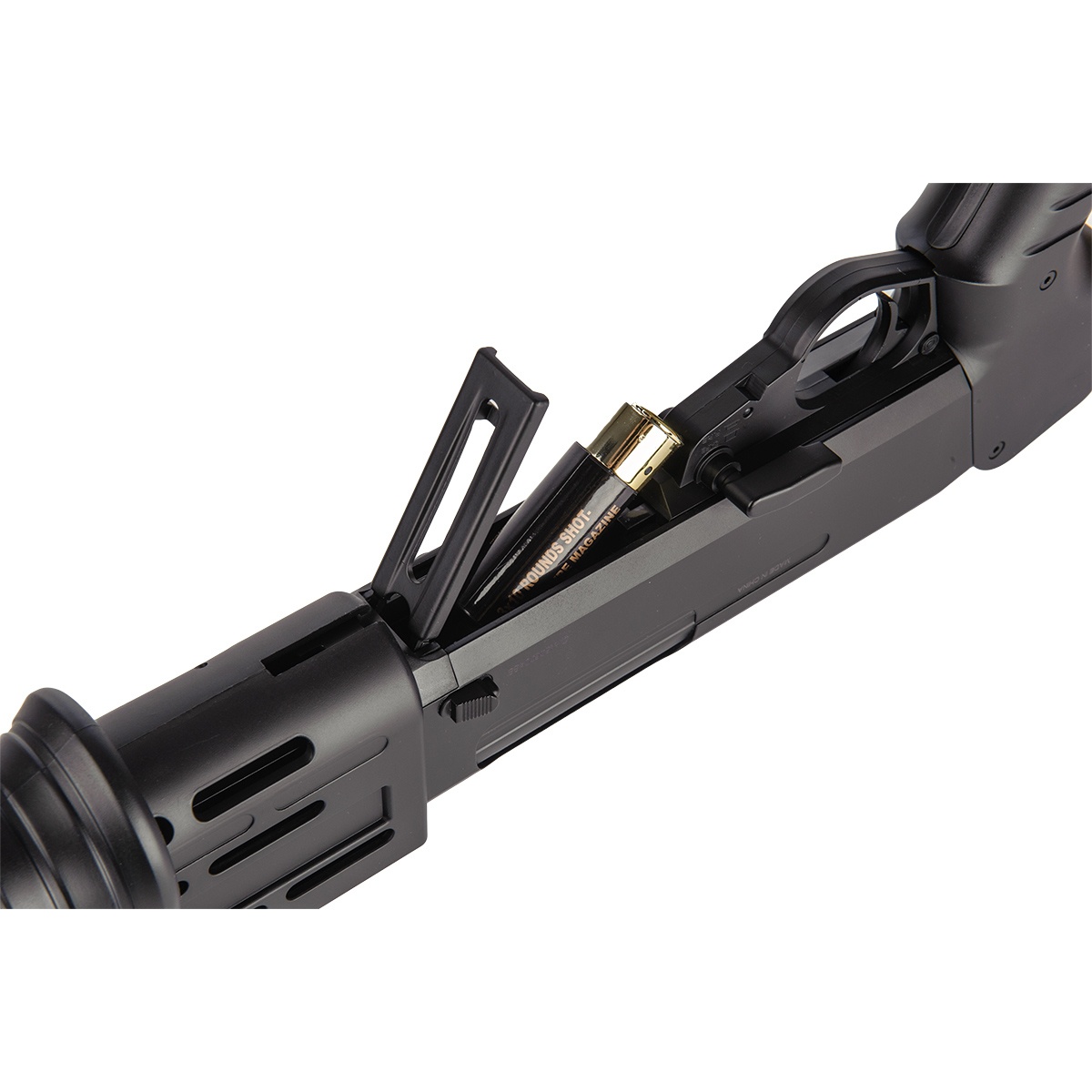 Ammo type: Seamless 0.20g or heavier (0.23g, 0.25g, 0.26g, 0.28g, etc) BBs. For maximum performance and accuracy, Airsoft Megastore recommends GoldenBall ProSlick BBs which carry perfect spherical consistency and density, available at Airsoft Megastore for the lowest price on the market, guaranteed.