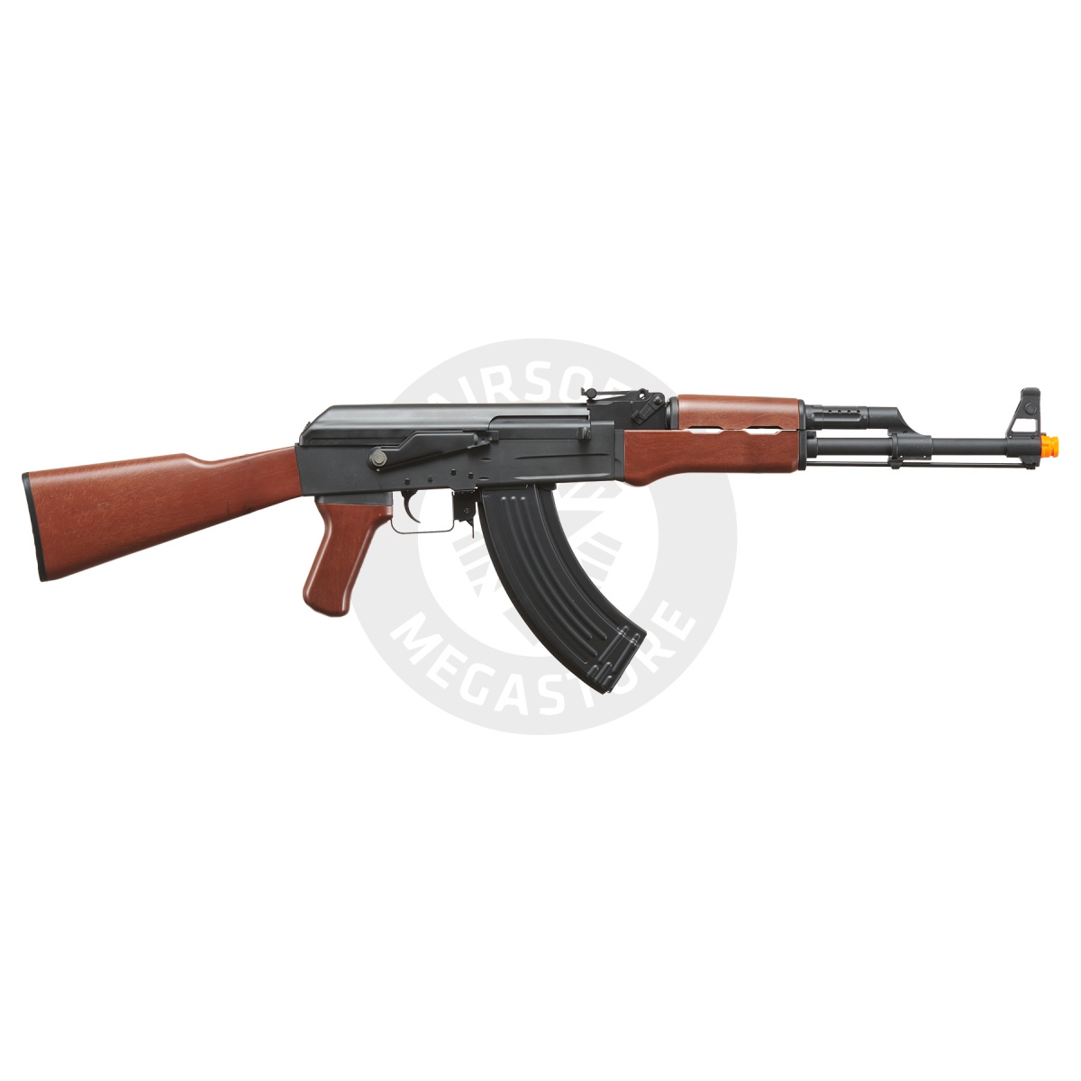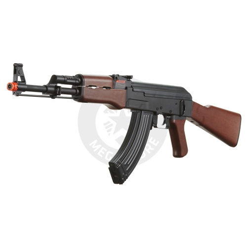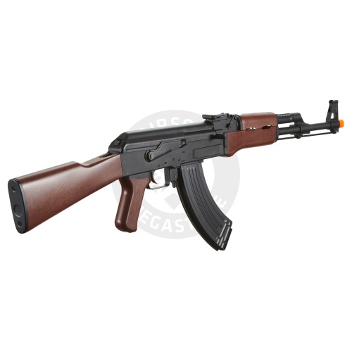 Created as the classic replica of the AK47 Assault Rifle, Lancer Tactical's LT-728-G2 model AK Variant has produced a lightweight AEG that's measured out to 34.25" inches in length and weighs in at nearly seven pounds. Showcasing the class full wedged stock, the parts offer a comfortable weld to position a nice pressure point that doesn't issue any sign of recoil. The stock itself is designed with realistic faux wood imitation material to maintain its classic roots. Besides the rear stock, the pistol grip and handguard also displays the same colorway of imitation wood as well.