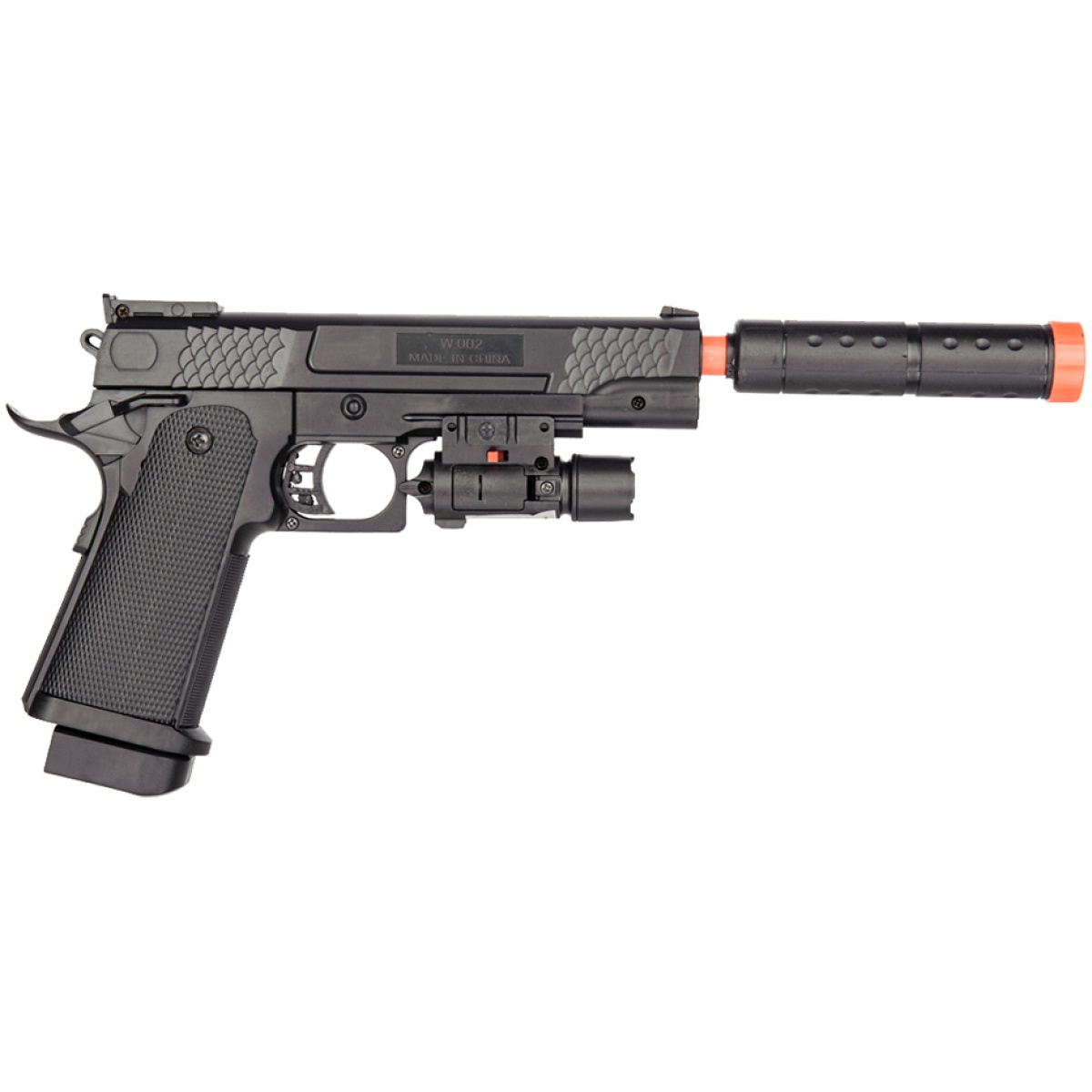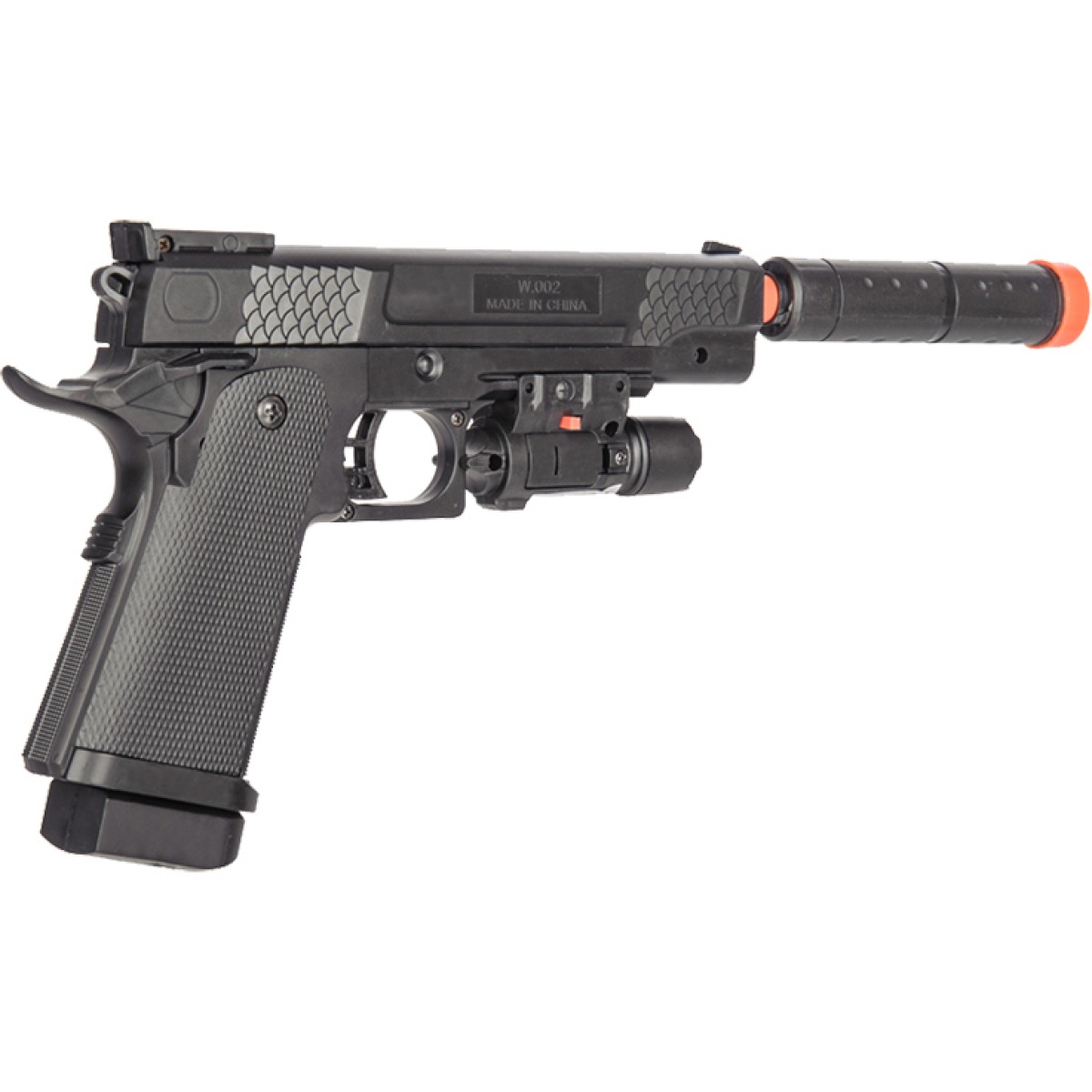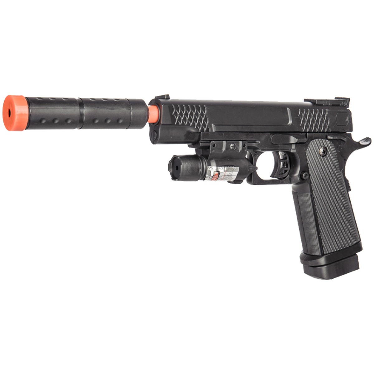 P2002C Spring Airsoft Pistol w/ Laser, Mock Extension - BLACK