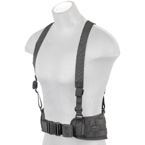 Lancer Tactical Nylon MOLLE Harness Battle Belt w/ Suspenders - BLACK