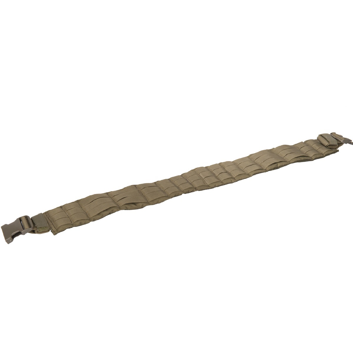 • MOLLE pouches outline the belt for ammo and other needs on the field.