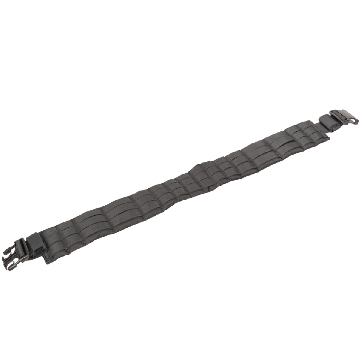 • MOLLE pouches outline the belt for ammo and other needs on the field.