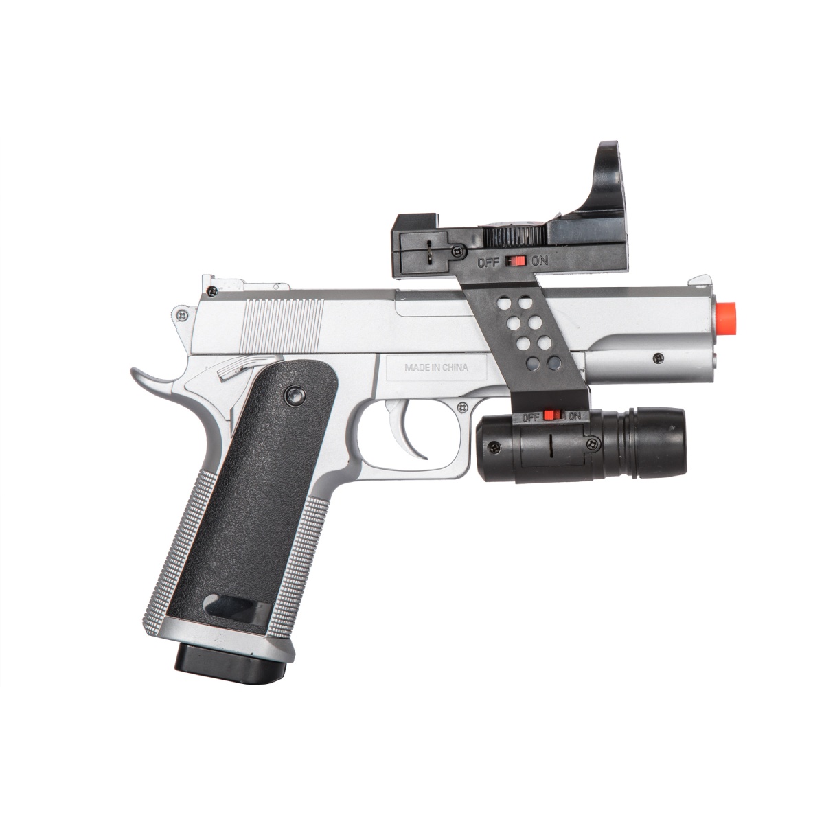 UK Arms M1911 Airsoft Spring Pistol w/ Flashlight, Sight, and Laser