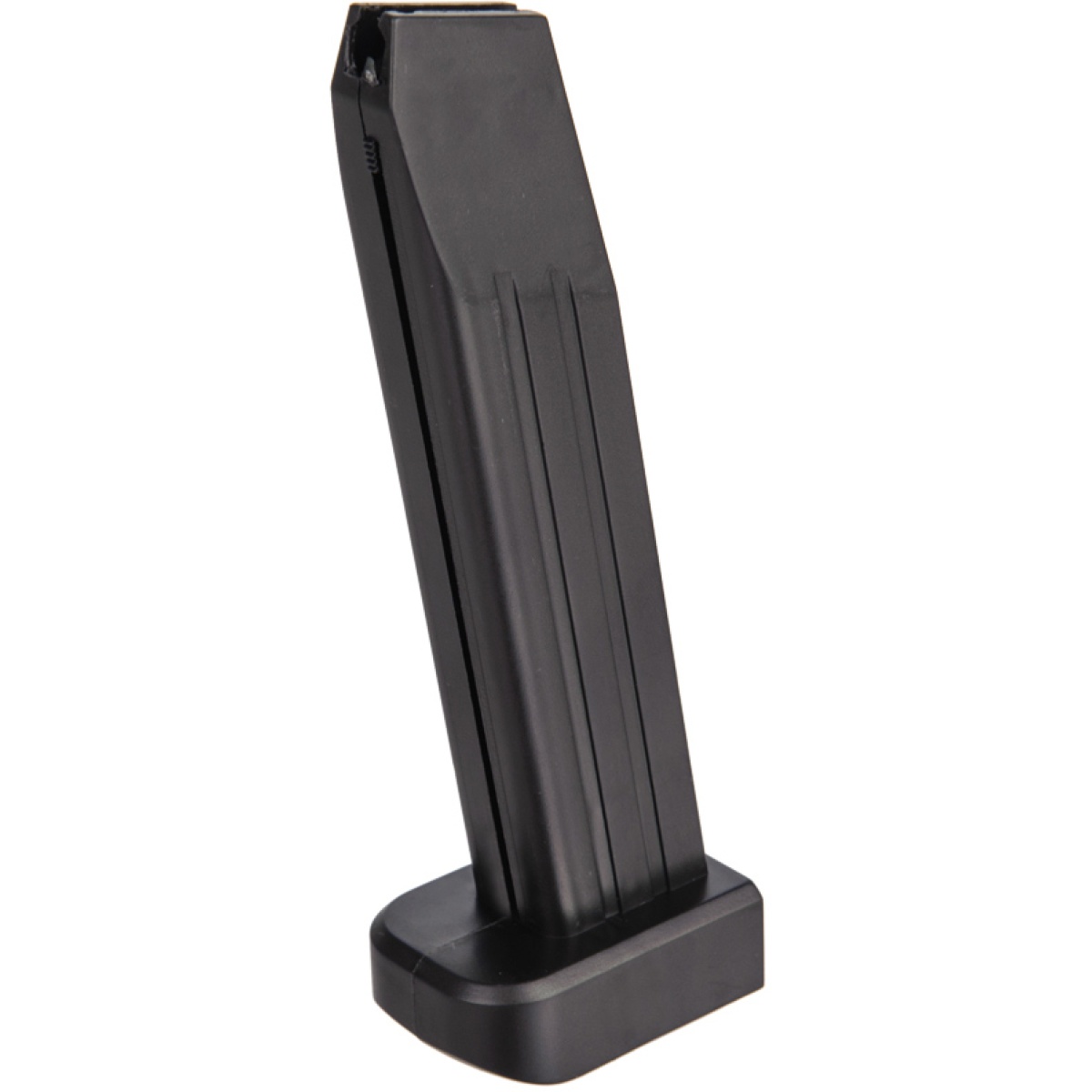 Barrel extension gives airsoft pistol a more tactical appearance.