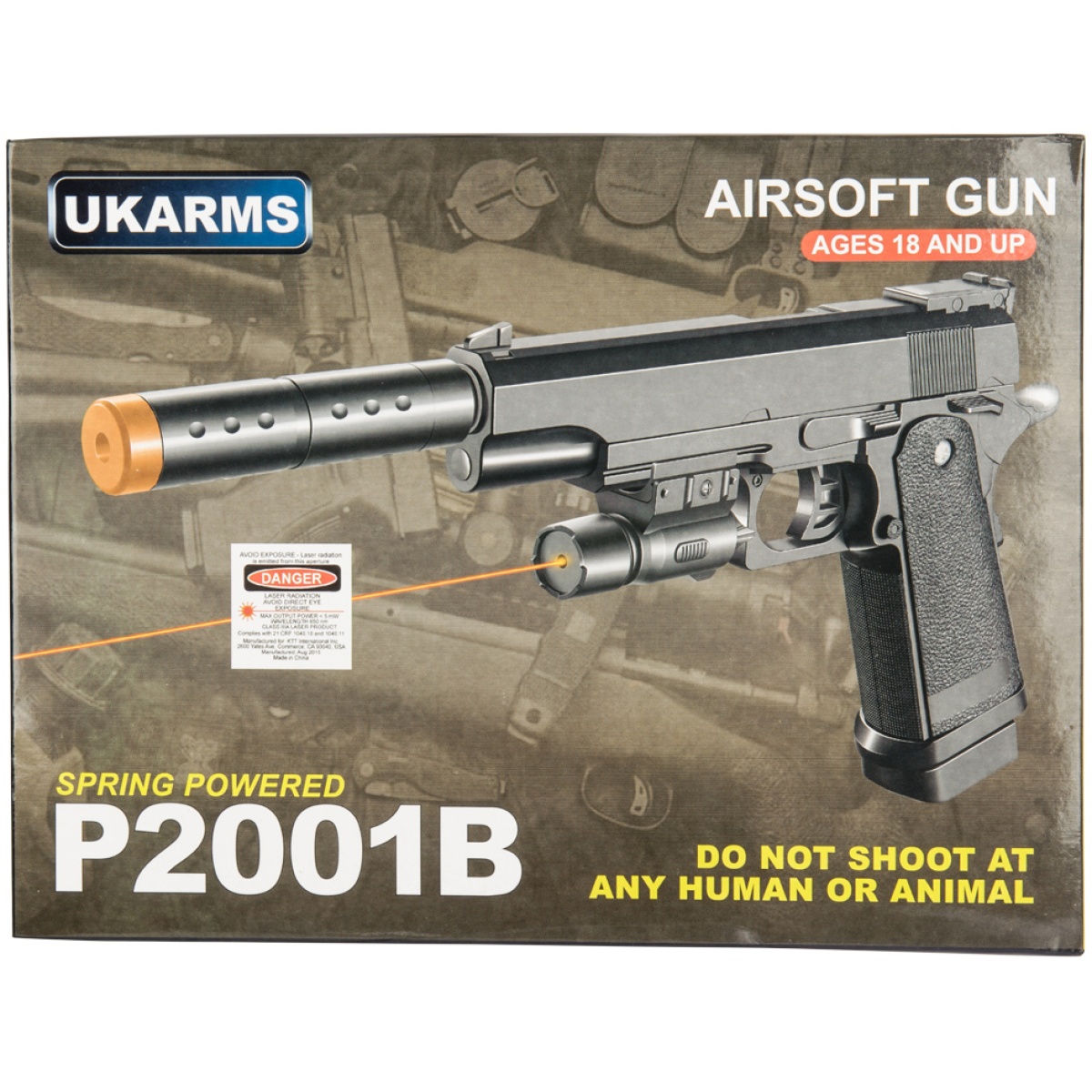 UK Arms P2001B Spring Airsoft Pistol w/ Laser - BLACK