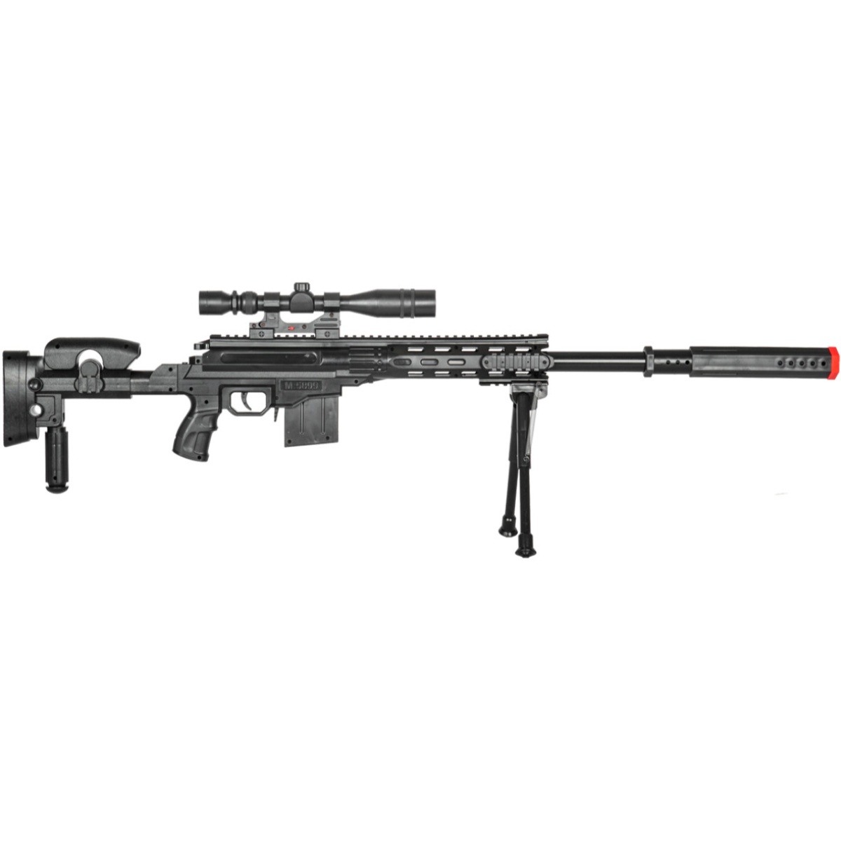 Some airsoft players seek attachments to improve performance and appearance. The P2668 airsoft sniper rifle provides the right amount of essential any airsoft user would love to own. Starting off with the slick mock suppressor to showcase a more realistic and tactical appearance. The immersive mock scope on the other hand, helps to pin point targets at a certain distance. Contributing to those attachments are stability. The included bipod provides more balance on an unstable platform to improve your precision during performance. So look no further when you're looking to purchase the ideal airsoft sniper rifle and choose the P2668 to hone in on your targets and help your team to victory.