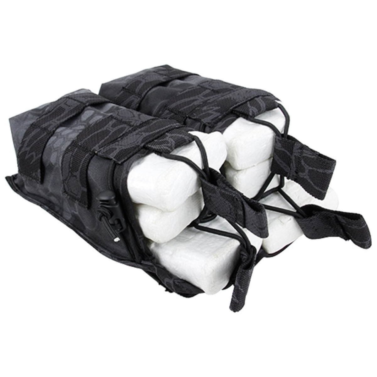 The AMA Double Open Top Magazine Pouch w/ Paracord Lacing is a great addition for players who prefer carrying additional ammunition instead of stressing out over the amount of ammo they have left. Easily strapping in with the rest of your MOLLE gear while taking little space, this reliable pouch can store up to four M4/M16 magazines, making the combatant lethal on the battlefield. For attachment on your plate carriers, vests or tactical belts, this pouch's versatile and compact size delivers convenient placement, minimizing your reload time. Although these small pouches carry up to four mags, you can play worry-free while maneuvering throughout the field. When sealed by its paracord lacing strap, this pouch will fasten to your magazines securely regardless of the push and pull associated with moving from one point of cover to the next. You can never have enough magazines indoor or outdoor, this double M4 pouch is a great choice for any loadout!