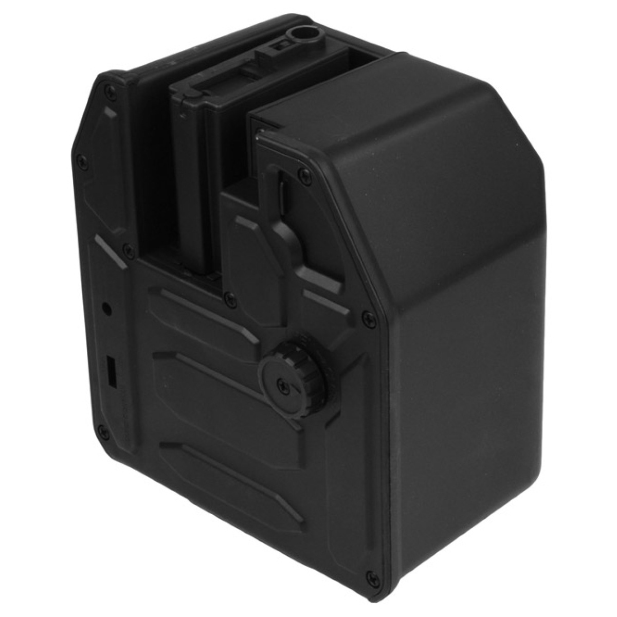 The Atlas Custom Works manufactured 5,000rd M4/M16 super high capacity box magazine is one of the BEST high-volume mags you can get for your M4 / M16 / AR AEG. It effectively turns your AEG into an effective support weapon, without any major modifications needed on the actual receiver of your rifle. A large loading compartment opens to allow you to pour up to 5,000 BBs into the mag, and a large, easy to turn gear wheel located at the bottom of the drum mag allows you to effortlessly wind BBs up the feed and into your AEG for seamless full-auto firing.