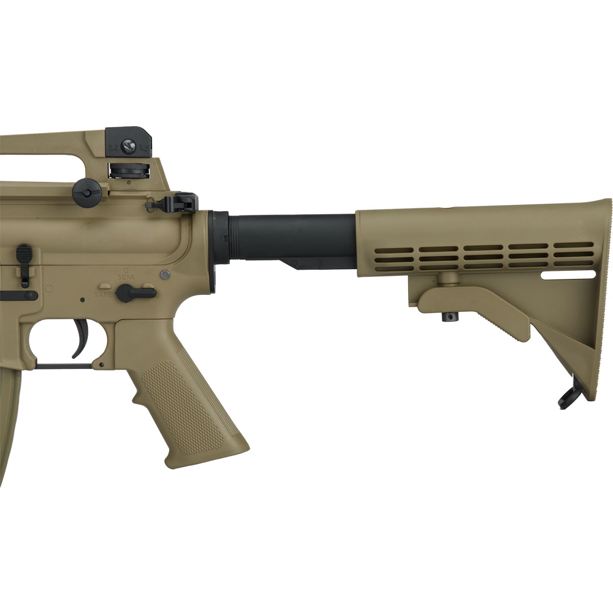 • Fire mode selector mode includes full-auto, semi-auto, and safety mode