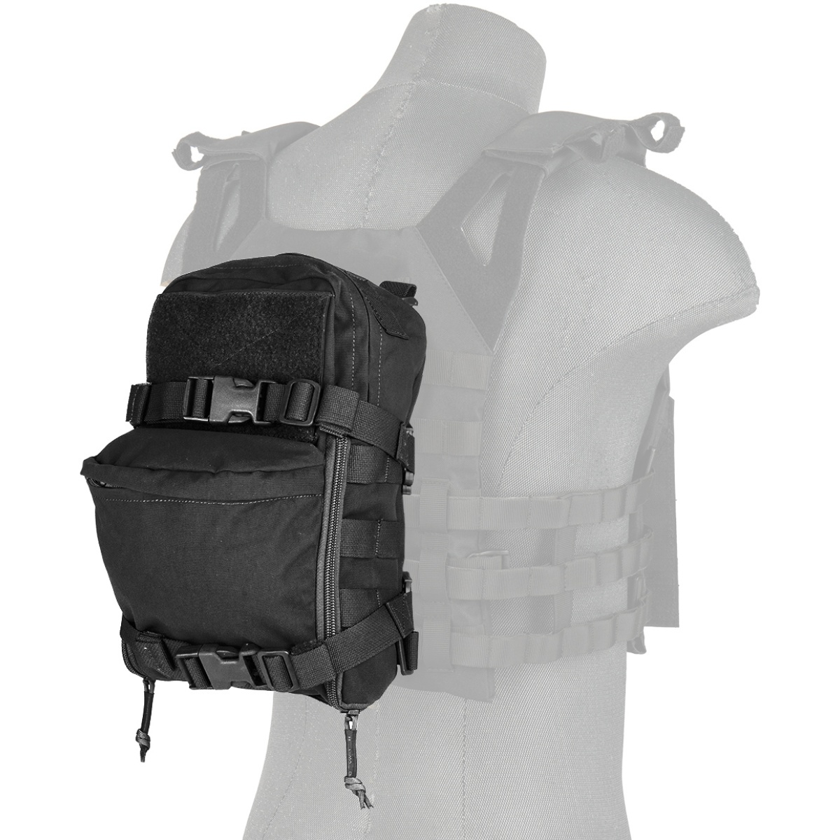 • - Dual rear straps can attach onto your MOLLE gear.
