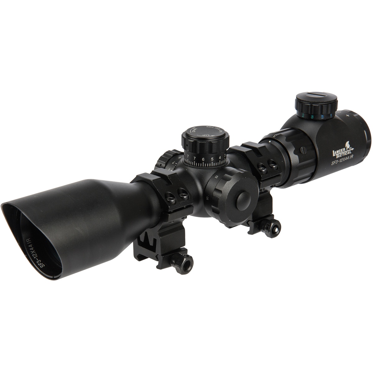 The CA-1417 Lancer Tactical 3X-12X 205mm Shockproof Rifle Scope is built for airsoft marksmen who demand clarity, durability, and precision. Featuring a versatile 3X to 12X magnification range and a 44mm objective lens, this rifle scope delivers exceptional field visibility and long-range target acquisition. The Mil-Dot reticle allows for accurate windage and elevation estimations, while the nitrogen-filled tube ensures the optic is waterproof, fog-proof, and shockproof ready for any terrain or weather condition. Whether you're engaging from a distance or adjusting for variable range, this scope keeps your sight picture crisp and clear thanks to premium multi-coated lenses for maximum light transmission. Designed for functionality and tactical performance, the Lancer Tactical scope includes optional red or green detachable reflex sights that can function as stand-alone units for CQB transitions. A quick-detach lens system allows the shooter to seamlessly switch between long and short-range engagements without breaking focus. The included yellow lens cap and cover protect against glare and environmental interference, while the anodized matte finish resists wear during rugged use. With intuitive windage and elevation turrets for rapid adjustment, the CA-1417 scope provides the edge needed for competitive gameplay or realistic training. Whether you're building a sniper loadout or enhancing your designated marksman rifle, this shockproof optic delivers rock-solid reliability and tactical versatility.