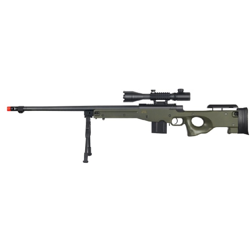 Wellfire Fluted Bolt Action Airsoft Rifle w/ Scope, Bipod - OD GREEN