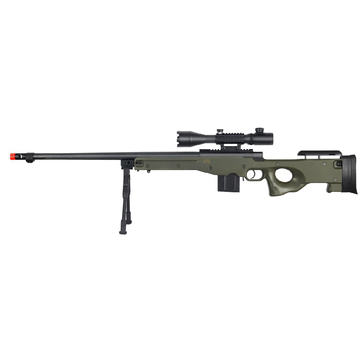 Wellfire Fluted Bolt Action Airsoft Rifle w/ Scope, Bipod - OD GREEN