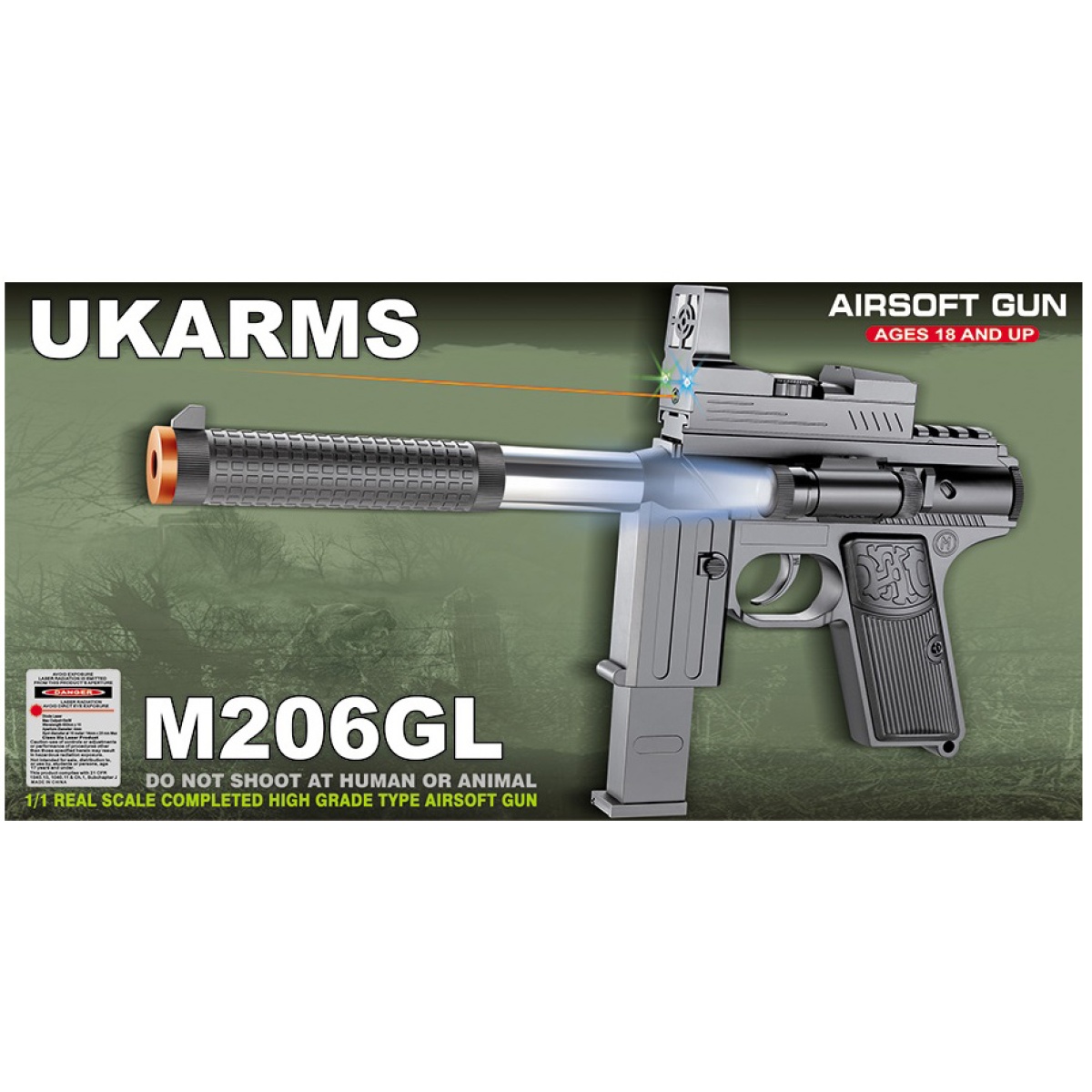 UK Arms M206GL Spring Pistol w/ Laser and Flashlight - BLACK