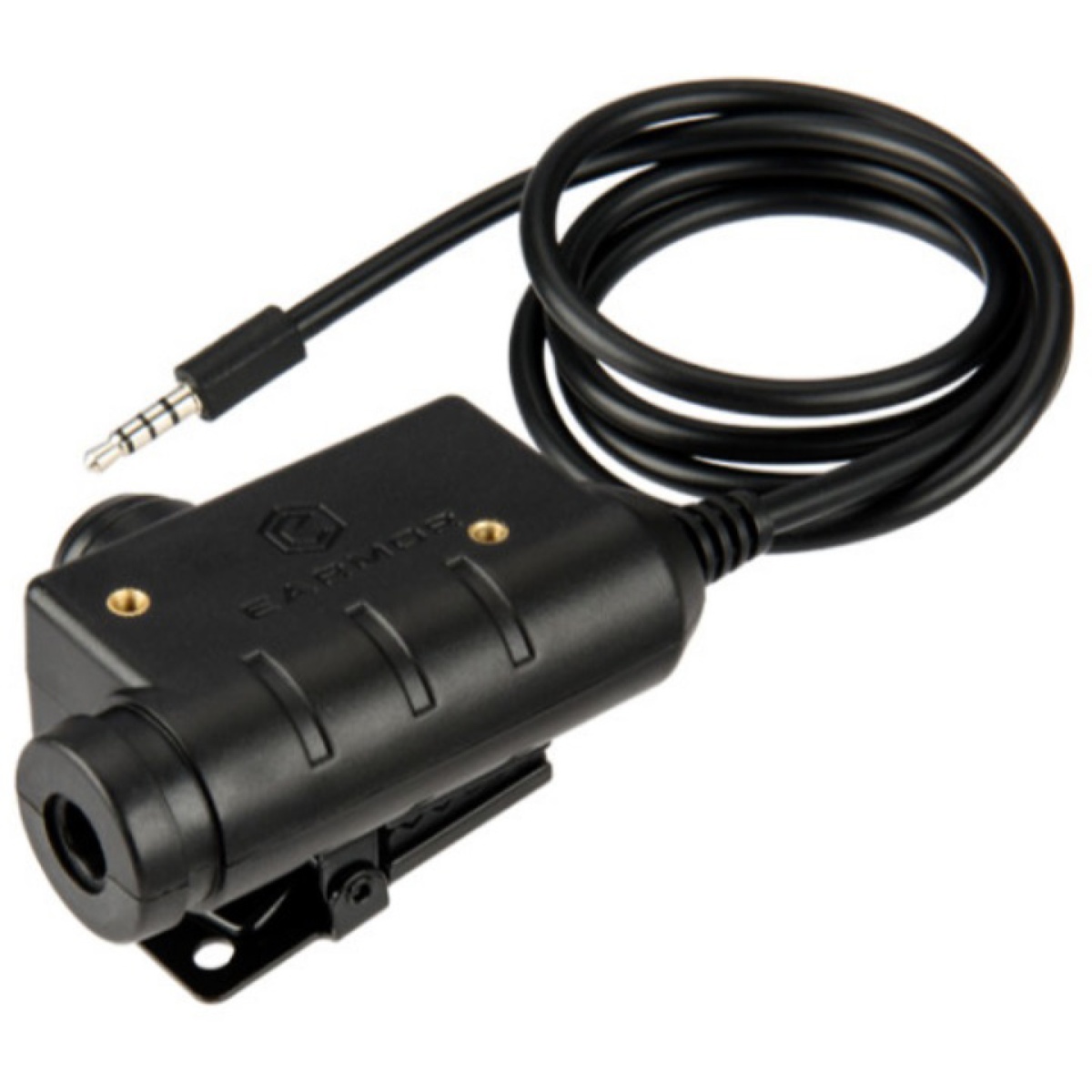 The M51 PH Earmor PTT is designed for seamless communication between tactical headsets and mobile devices. Built to military standards, this push to talk unit integrates a 3.5mm AUX plug compatible with a wide range of smartphones, tablets, and other mobile gear. Its compact black polymer housing is rugged and reliable, built for real world use in demanding environments. The 360 degree rotating clip offers flexible mounting to vests, belts, or gear straps, giving operators instant access to comms with minimal hand movement. Whether you are running drills, coordinating on the field, or working in security, this mobile PTT is built to streamline voice transmission with ease and speed. Additional features include a rear metal clip that secures the unit onto tactical gear, a small adhesive wrap to keep wires neat, and hook and loop compatibility for extra retention options. This makes the M51 PH a perfect upgrade for users looking to connect professional headsets to mobile devices without sacrificing mobility. Its durable polymer construction ensures a long lifespan while keeping the weight down. The streamlined design prevents cord tangle and promotes an efficient cable route during active use. Perfect for training, airsoft operations, or any mobile team communication scenario, this phone version PTT delivers practical function and rugged dependability in one compact unit.