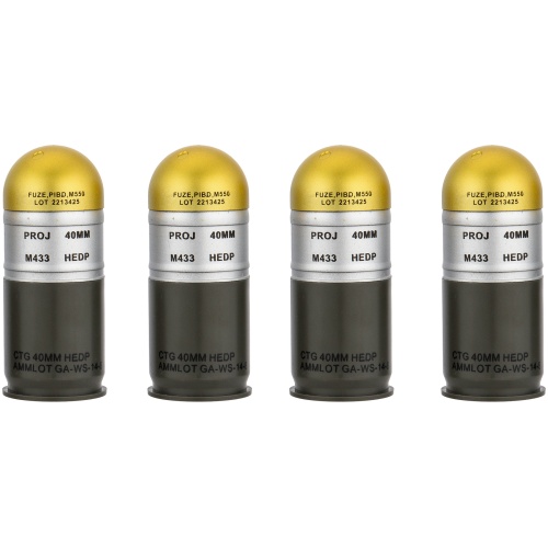 AMA M433HE-1 Airsoft 40mm Dummy Grenade Shells - 4 Pack - GOLDEN
