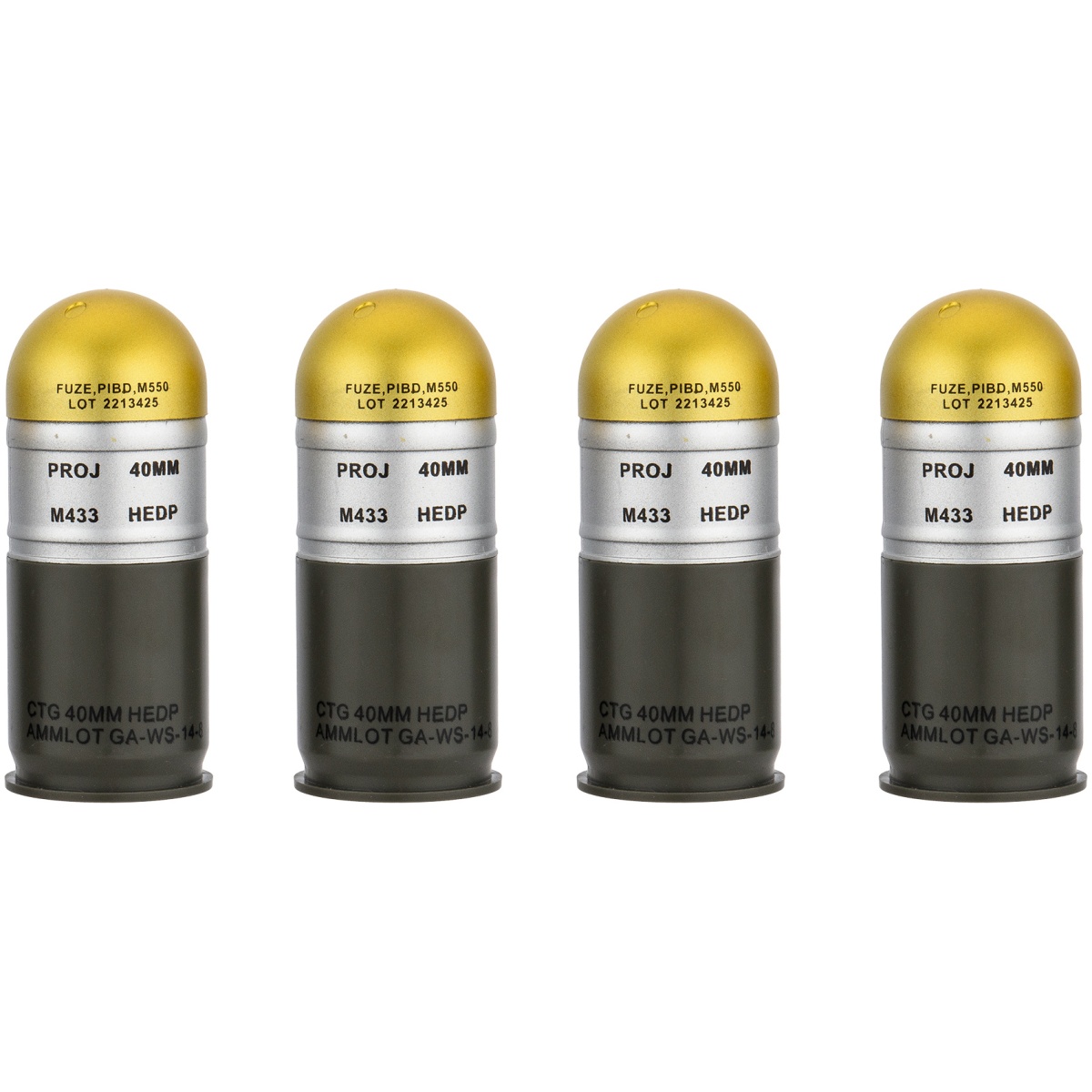 AMA M433HE-1 Airsoft 40mm Dummy Grenade Shells - 4 Pack - GOLDEN