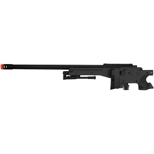 Fold away and prepare yourself against the opposition and pick em off! The M1196 Airsoft Bolt Action Rifle can be equipped to perform with a folding stock that moves horizontally to the side of the receiver. The construction on this bolt action is made up with a full metal finished with the outer barrel, trigger unit, and bolt to pull out the durability force you need. Looking on the light side, the polymer receiver and ABS plastic stock blend helps shouldering the airsoft sniper from a standing position. Adjust the stock to fold in or out depending on your preference to shoot and pin point your target. The upper portion of the M1196 provides a 20mm standard rail for optic attachments. Additionally this sniper includes a speed loader, an extra rail segment, and a small bag of BBs all in one package.