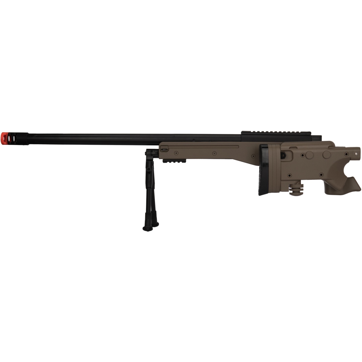 Fold away and prepare yourself against the opposition and pick em off! The M1196 Airsoft Bolt Action Rifle can be equipped to perform with a folding stock that moves horizontally to the side of the receiver. The construction on this bolt action is made up with a full metal finished with the outer barrel, trigger unit, and bolt to pull out the durability force you need. Looking on the light side, the polymer receiver and ABS plastic stock blend helps shouldering the airsoft sniper from a standing position. Adjust the stock to fold in or out depending on your preference to shoot and pin point your target. The upper portion of the M1196 provides a 20mm standard rail for optic attachments. Additionally this sniper includes a speed loader, an extra rail segment, and a small bag of BBs all in one package.
