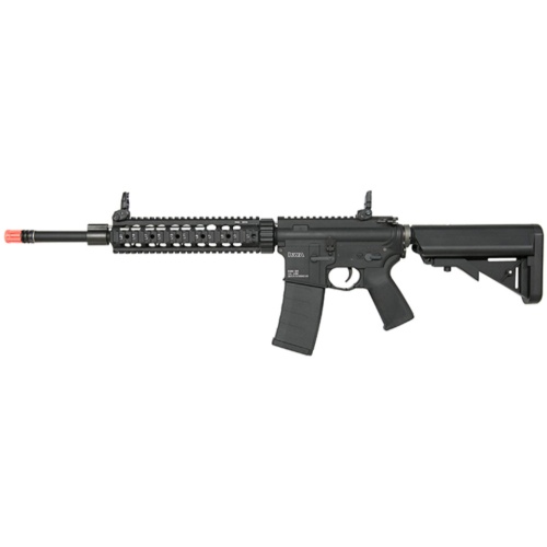 KWA's KM4 SR10 is equipped with 9mm steel ball bearing bushings and a quick spring change system. This airsoft gun also has installed a lengthy, robust free-floating MIL-SPEC-1913 Picatinny RAS (Rail Adapter System). This laser-engraved RAS allows for quick upgrade potential, giving you freedom to customize your weapon with add-ons such as lasers, tactical flashlights, with enough length to even be outfitted with a grenade launcher unit. A clear top sight rail gives you freedom to mount pretty much any optic out on the market.