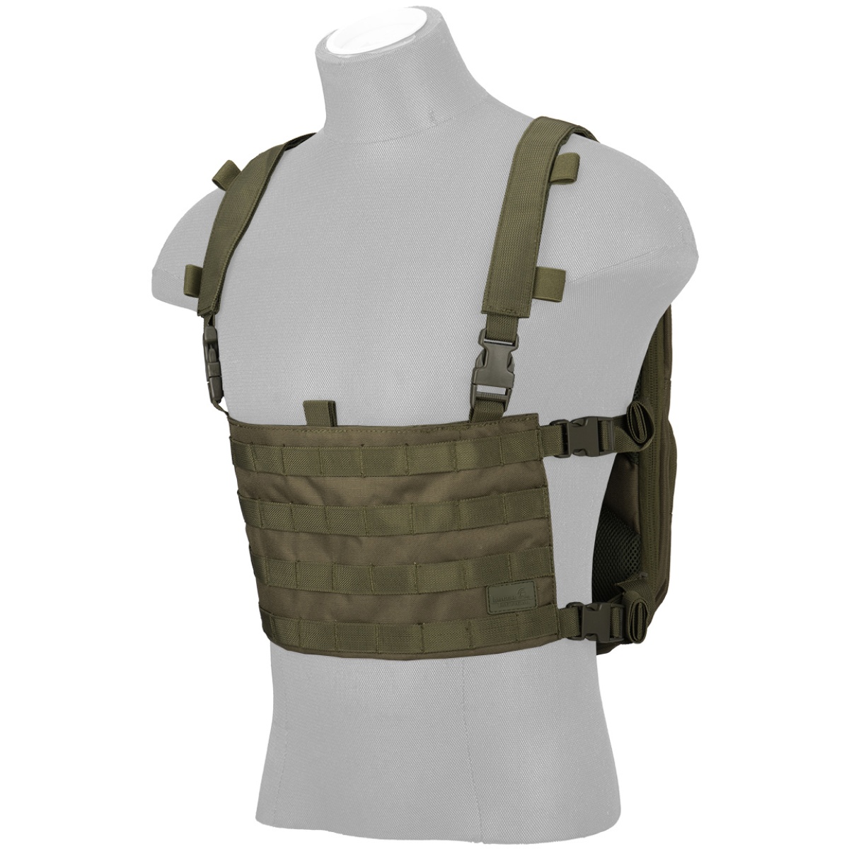 • - Quick-detach light chest rig sports four rows of MOLLE
